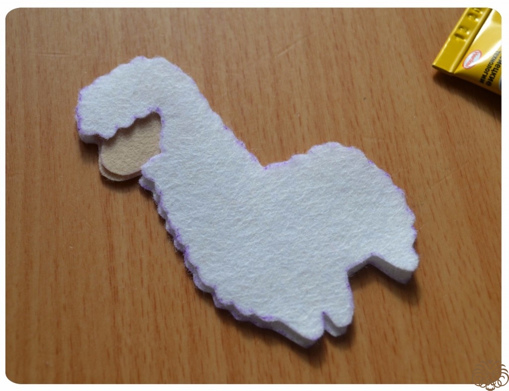 Теперь сверху мы кладем вторую деталь тела альпаки, так чтобы она полностью совпадала с силуэтом первой детали
