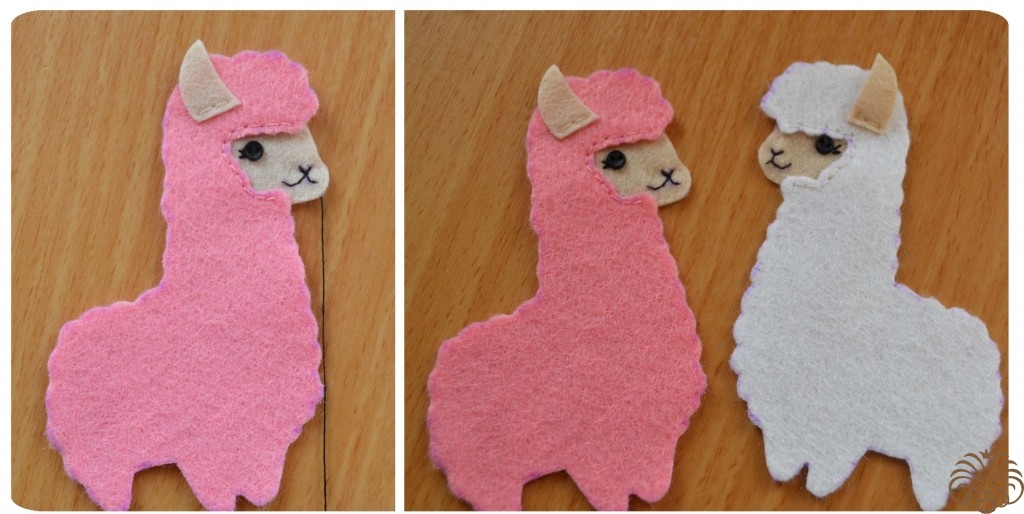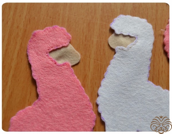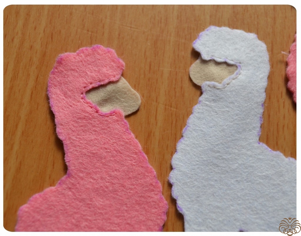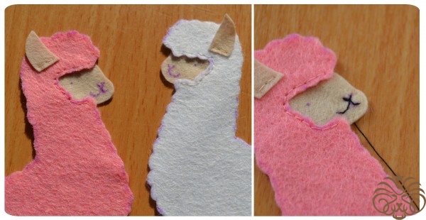 У розовой альпаки тоже пришиваем мордочку у обеих деталек розовыми нитками