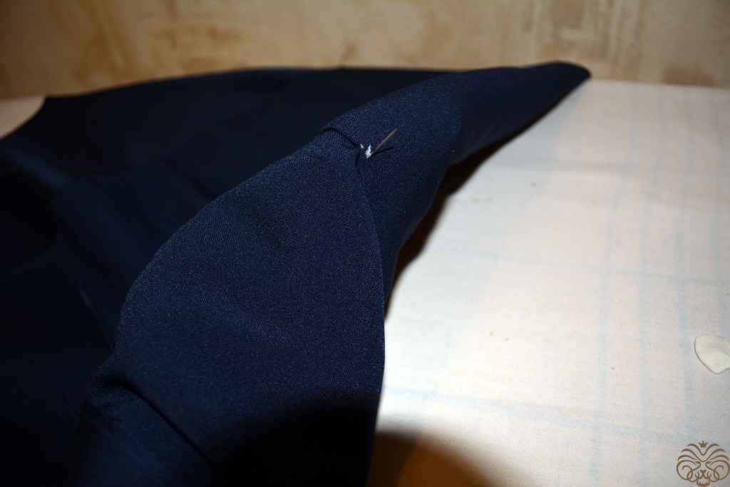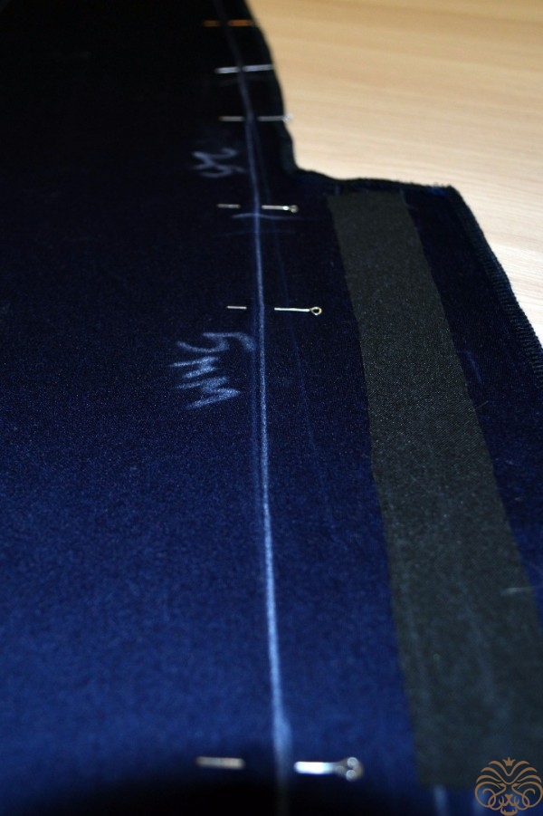 9. Пока средний шов зашит, рекомендую наметить подгибку низа изделия.