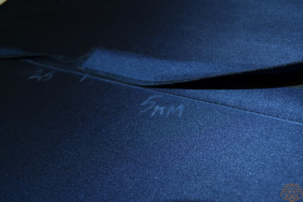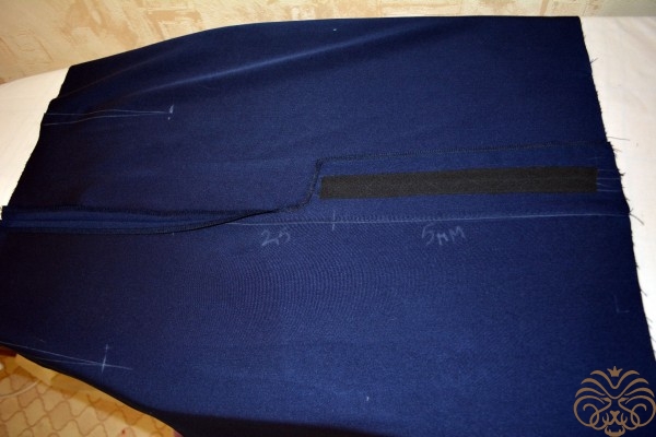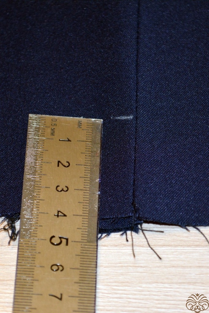 1. Первым делом при раскрое задних половинок юбки главное не забыть оставить припуск на обработку шлицы! На левом (если смотрим с изнаночной стороны!) полотнище 4-5 см,на правом же 8-10 см соответственно.