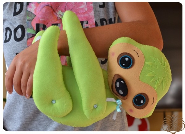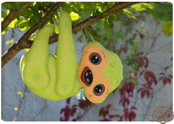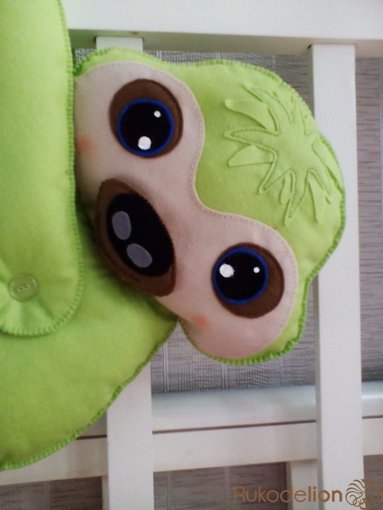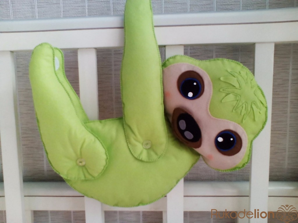 И вот наш обнимательный ленивец готов! Вешать его можно на руку, на ветку в саду, на кроватку к малышу или на ручку коляски и самое главное, его нужно почаще обнимать!