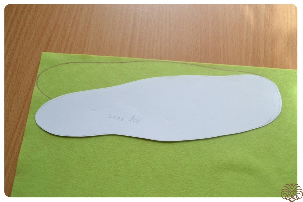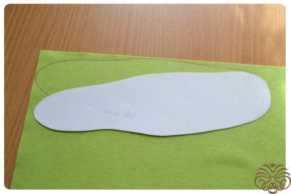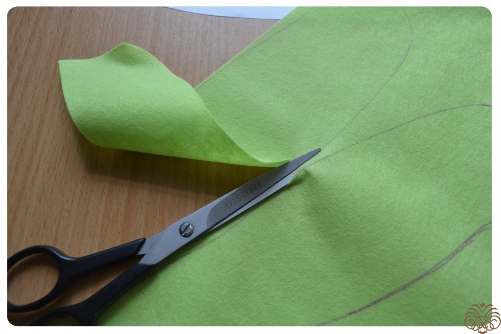 На салатовом фетре самоисчезающим маркером обводим два раза деталь тела ленивца. Вырезаем