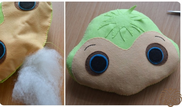 Набиваем мордочку синтепоном и заканчиваем обметочный шов