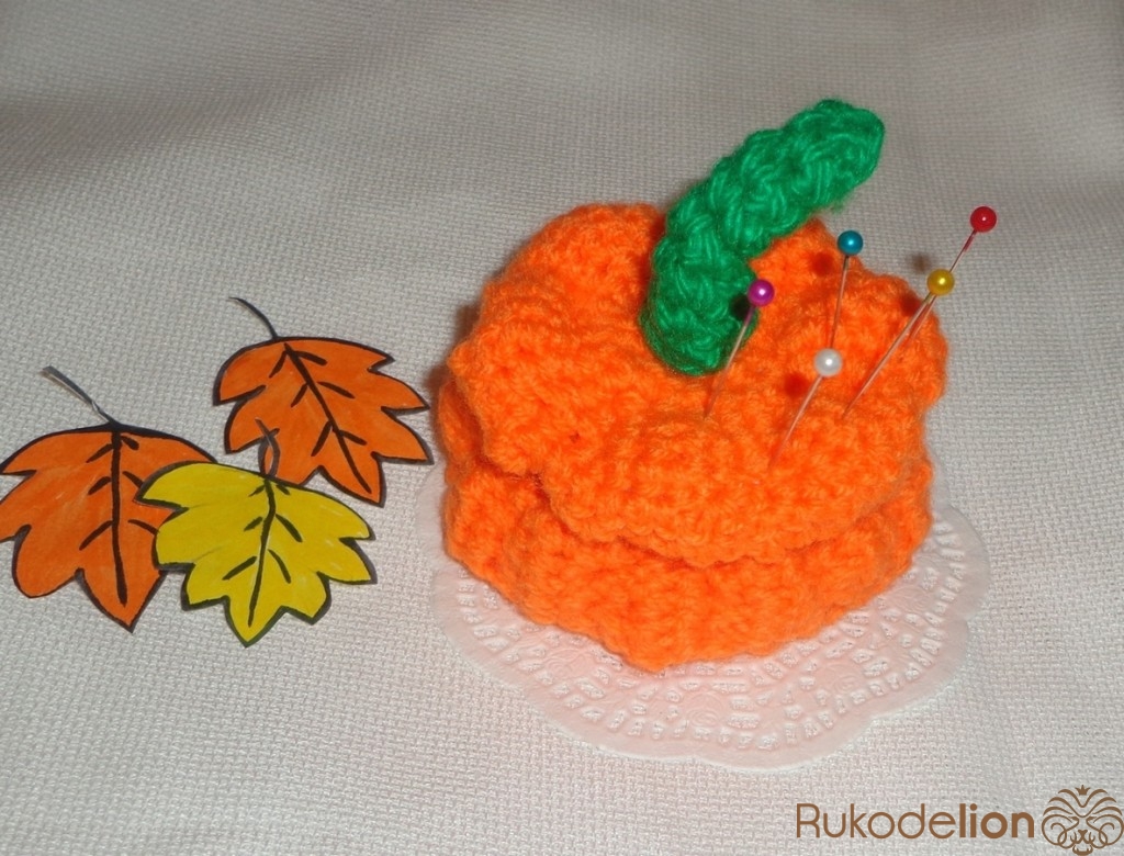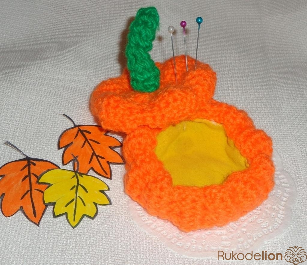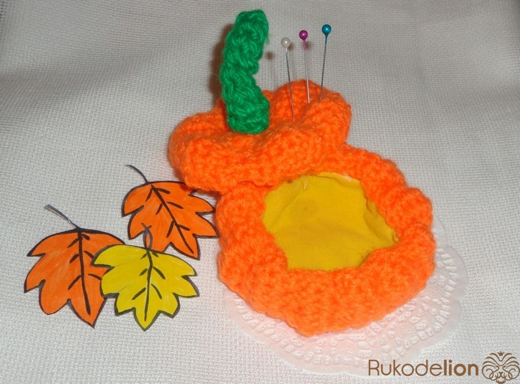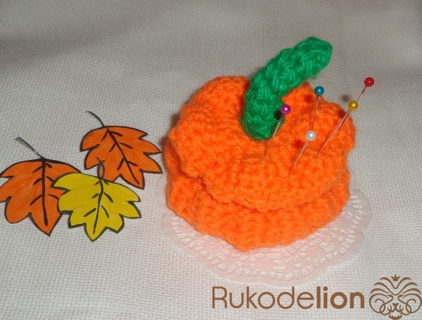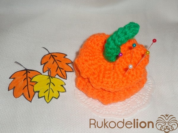 5. Какая красивая, яркая тыковка-игольница! Просто прелесть!