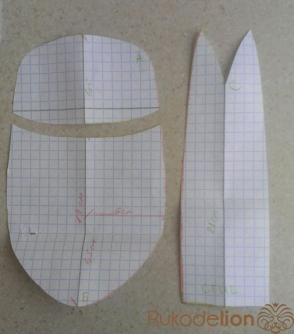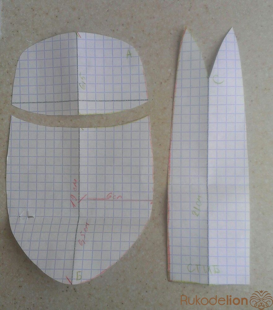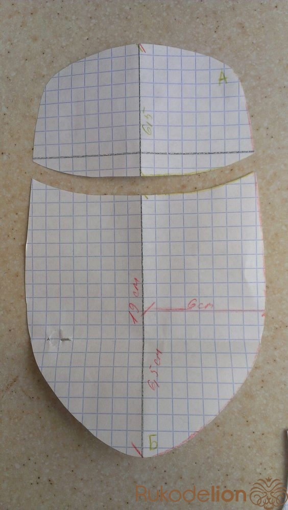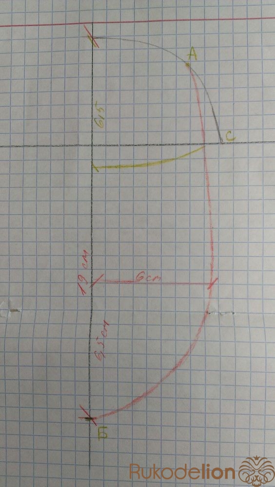 Нарисуем линию АБ, она должна равняться линии АБ с центральной части выкройки, форму рисуем округлую, думаю дно у кошелечка шириной в 6 см меня устроит, поэтому снизу ширина 3 см.