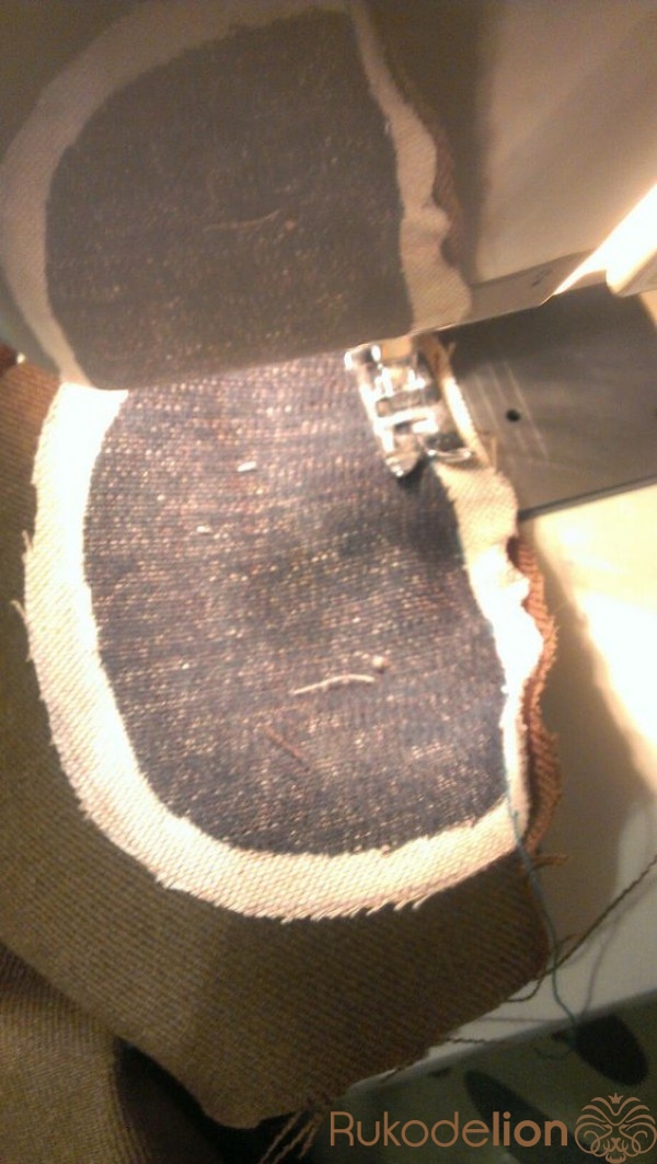 Теперь сметываем детали лицевой части, прошиваем на машинке, разутюживаем швы.