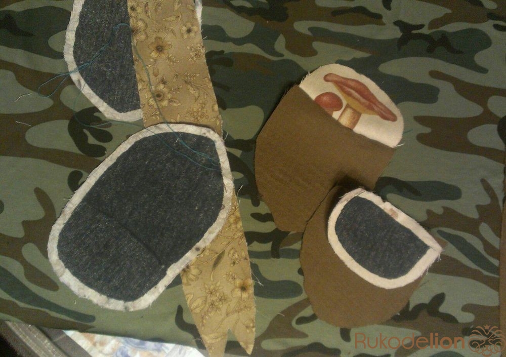 Раскладываю дублерин на ткани, проутюживаю, утюжком работаем аккуратно, прижимаем, не растягиваем ткань. После этого, вырезаем детали с припуском примерно 1 см, вот, что у нас получилось.