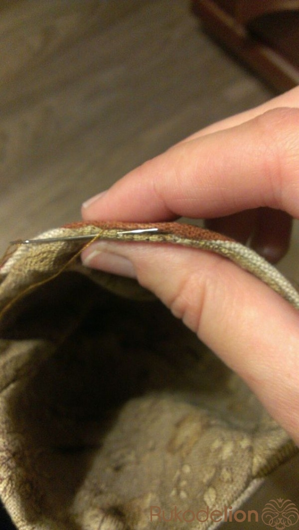 Утюжим швы. Складываем лицевую часть и подкладку лицом к лицу, сметываем, прошиваем по верху, оставляем отверстие для выворачивания. Выворачиваем, зашиваем отверстие потайным швом.