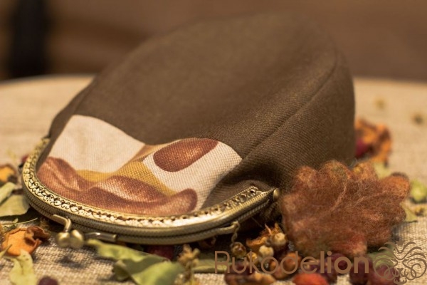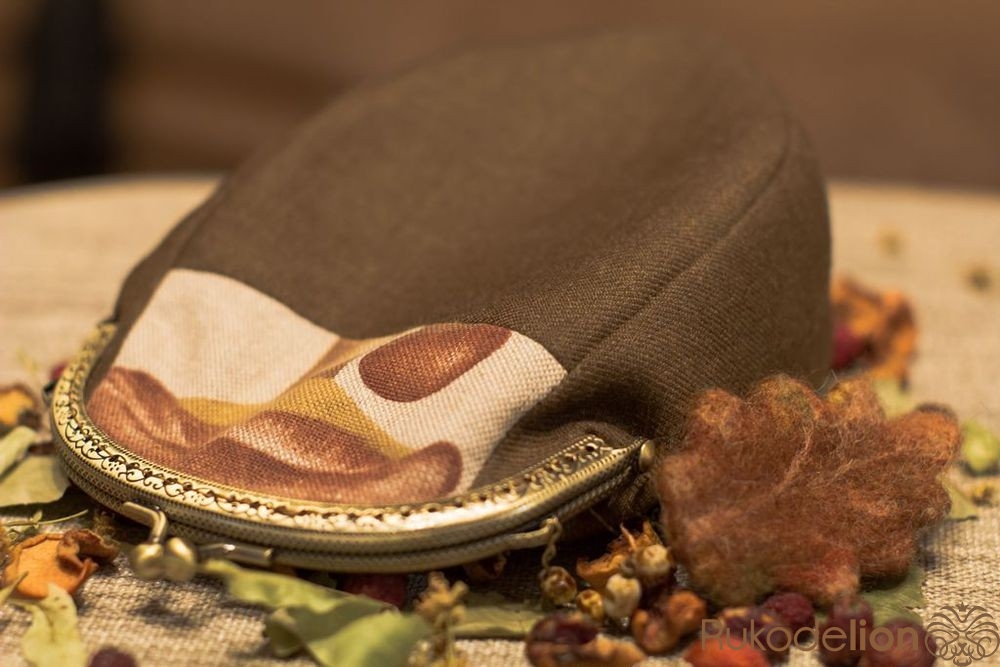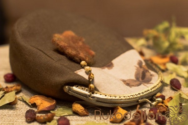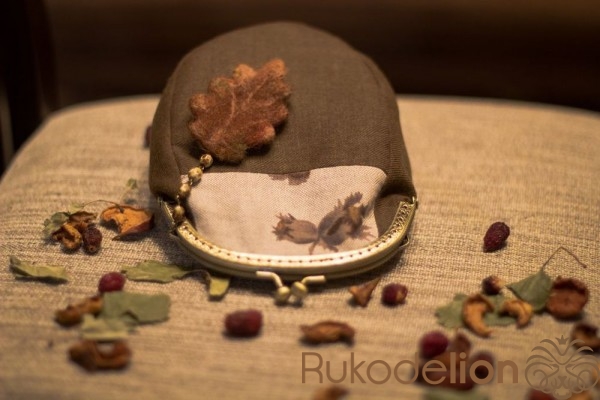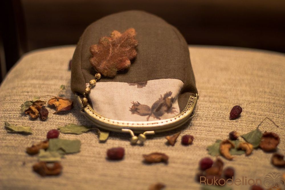 Кошелек на фермуаре в форме желудя с подвеской в виде листика дуба.