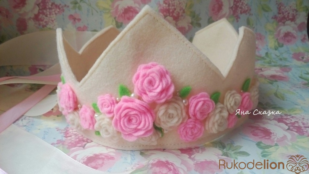 Фетровая корона с розочками будет радовать не только в ее первый День Рождения, а и в любой другой праздник благодаря съемной единичке.