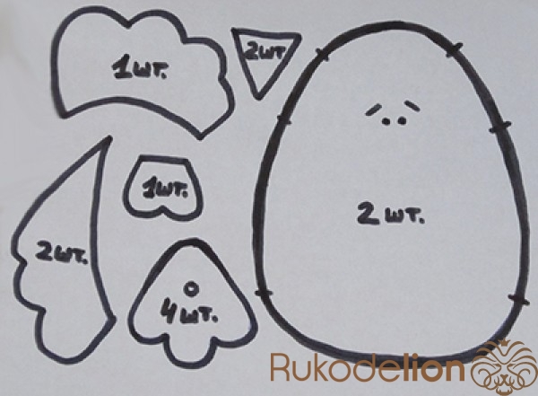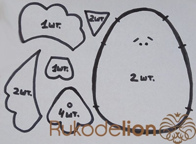 Вырезаем детали выкройки, переводим их на фетр. Должно получиться: - из бежевого фетра: туловище - 2 детали;