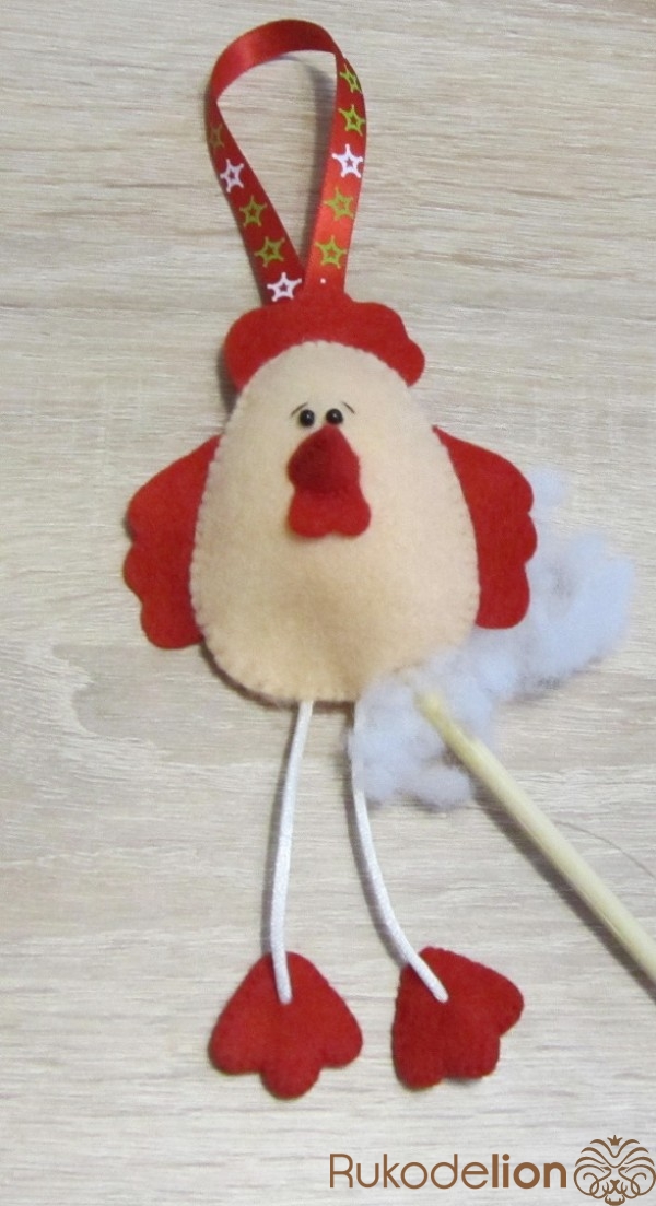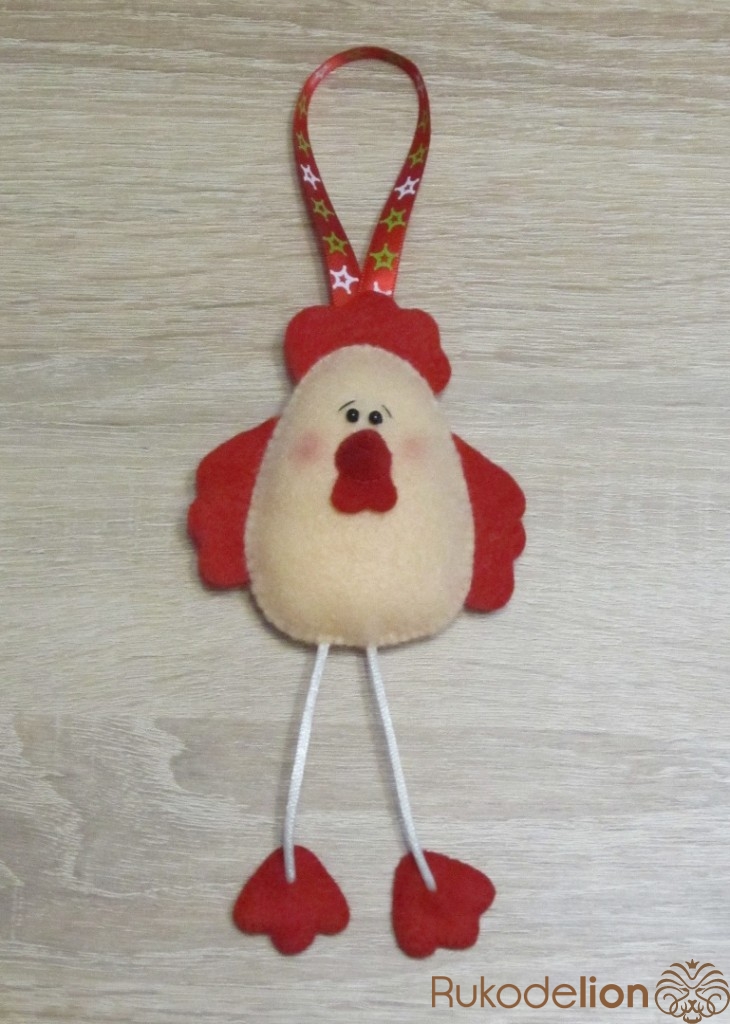 Такой забавный петушок будет прекрасно смотреться на новогодней елке или украсит горлышко бутылки на праздничном столе, а также станет отличным сувениром для друзей и коллег.