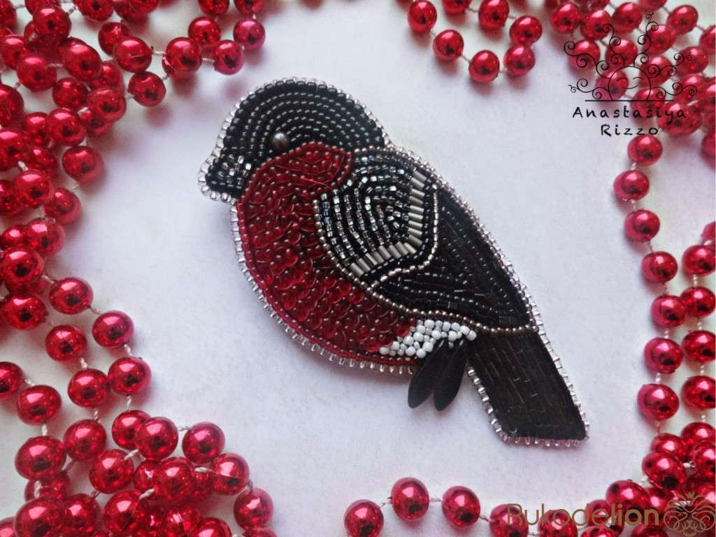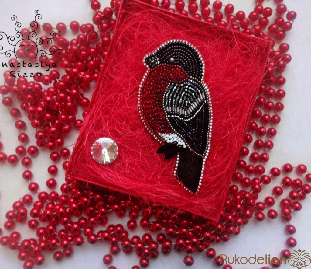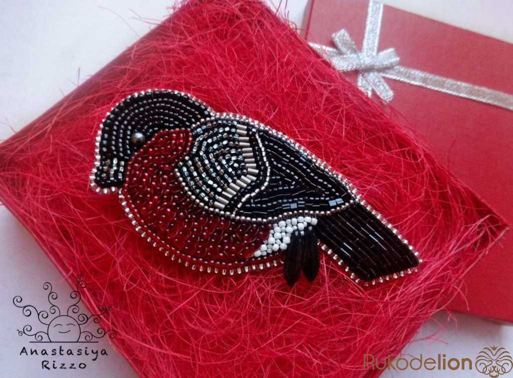 Брошь "Зимний друг" вышитый бисером и французскими пайетками.