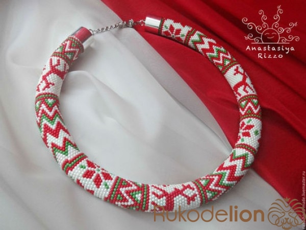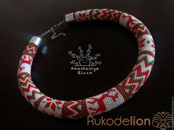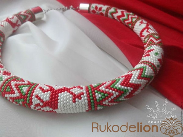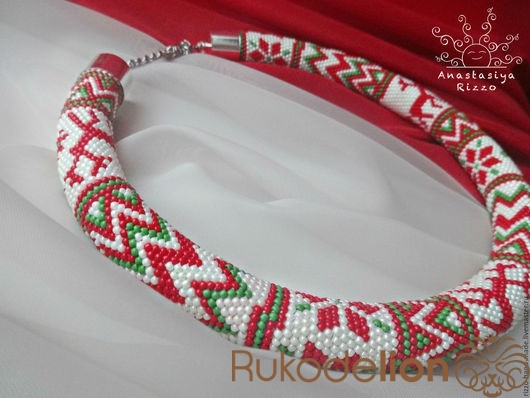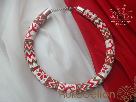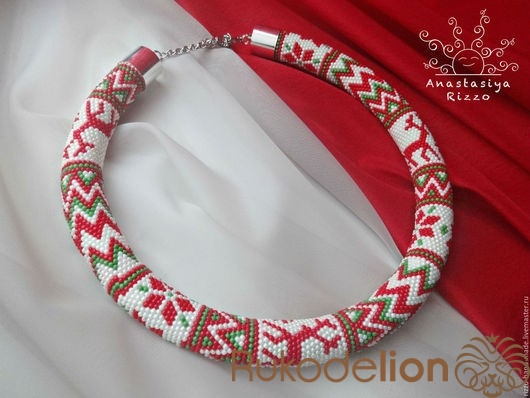Колье - жгут "Северные олени" из японского бисера Toho. Размер: Длина 50 см + цепочка 10 см.