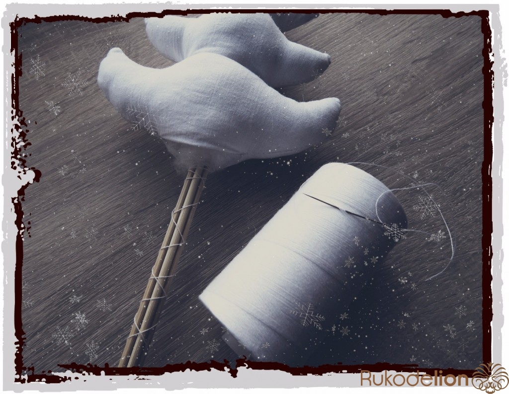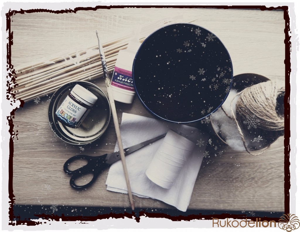 Также нам понадобятся ножницы, клеевой пистолет (можно заменить клей-моментом), кисточка, губка, нитки, иголки, булавки.