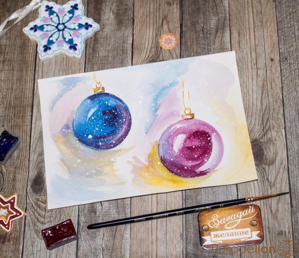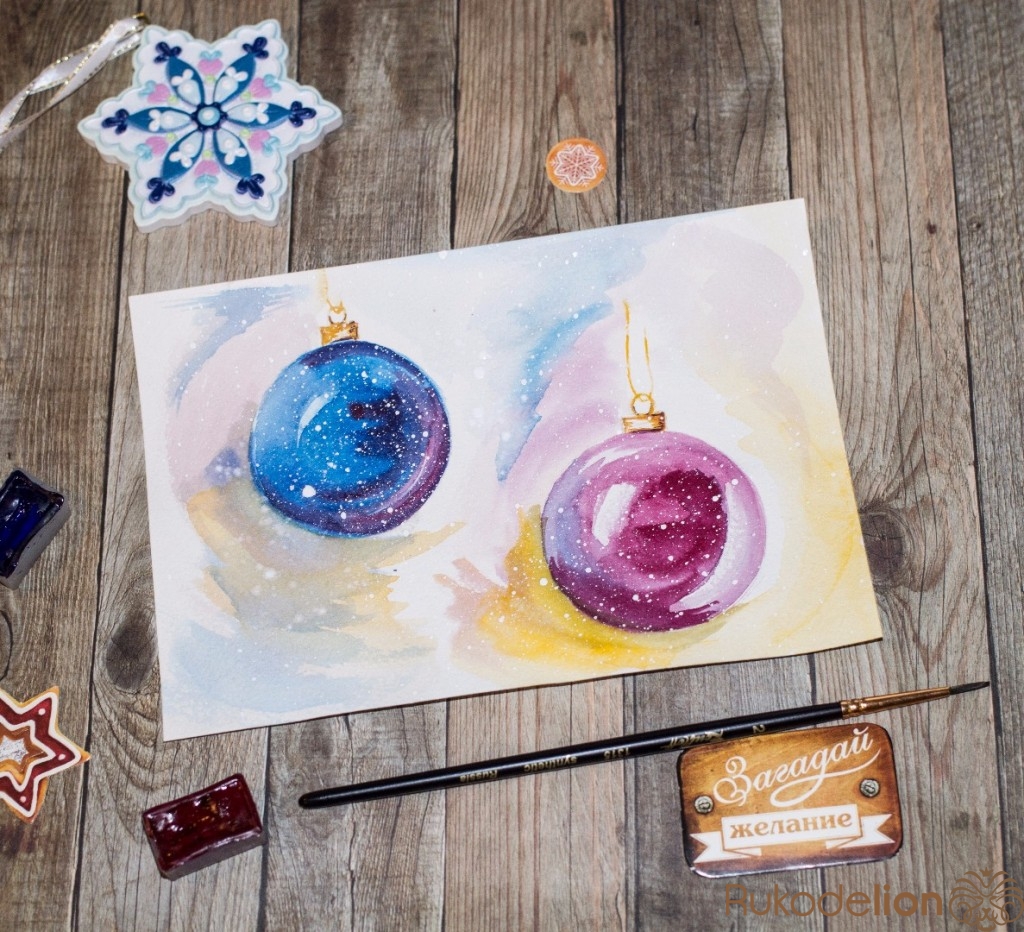 Акварельная открытка на новый год