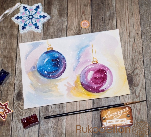 Акварельная открытка к новому году станет приятным комплиментом.
