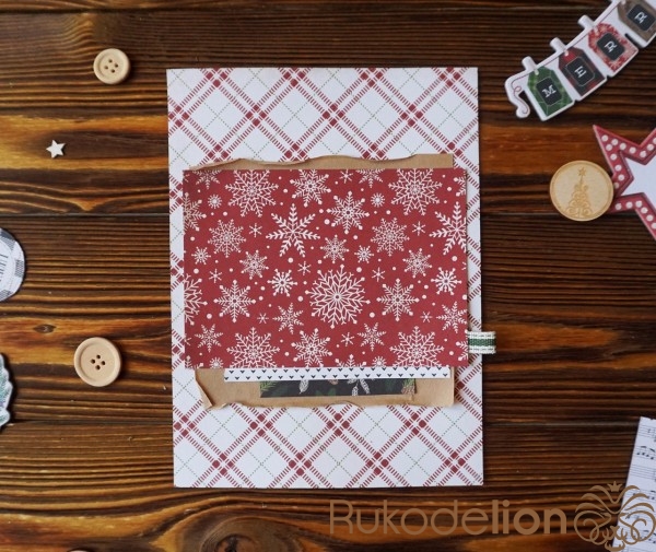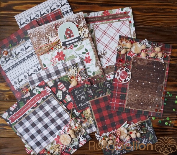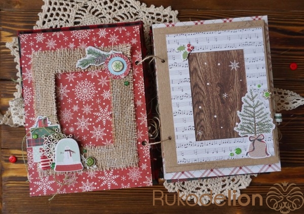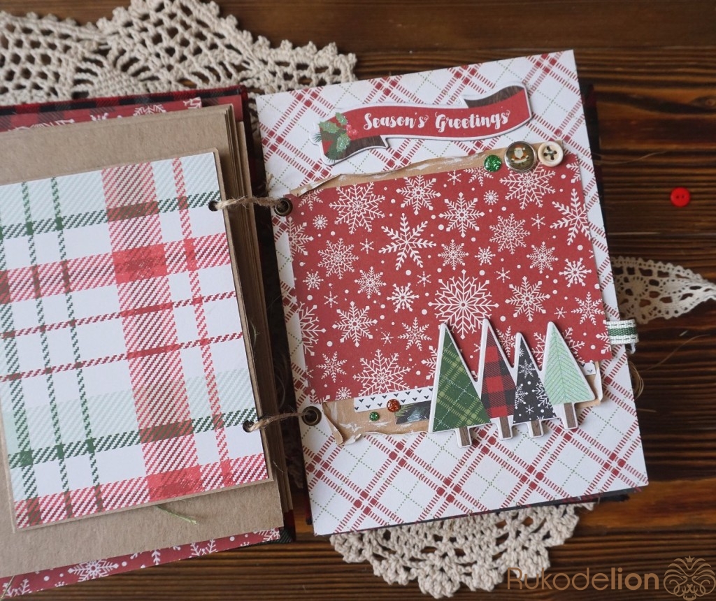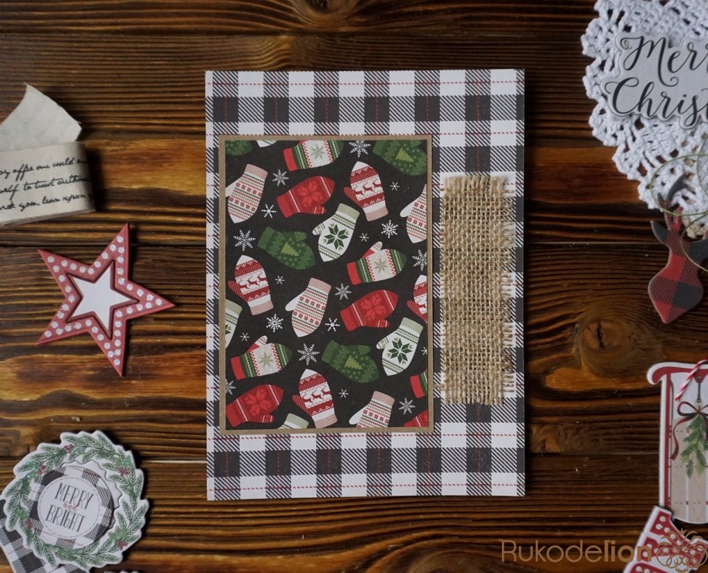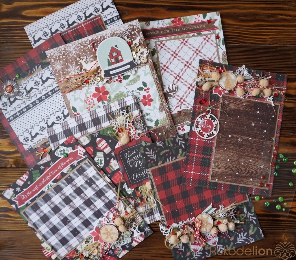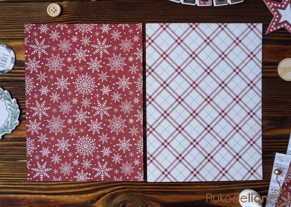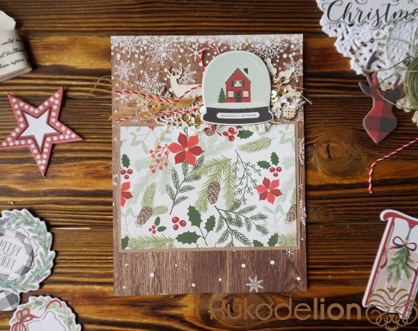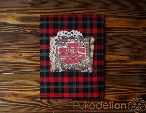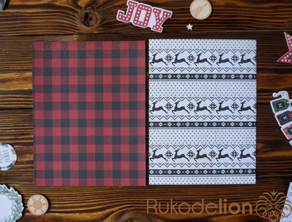 В работе использовала красивую коллекцию "Comfort and Joy" от MME (набор бумаги и чипборд), мешковину, рафию, маленькие шишечки, деревянные фишки и чипборд, брадсы и мелкий декор вроде пайеток.