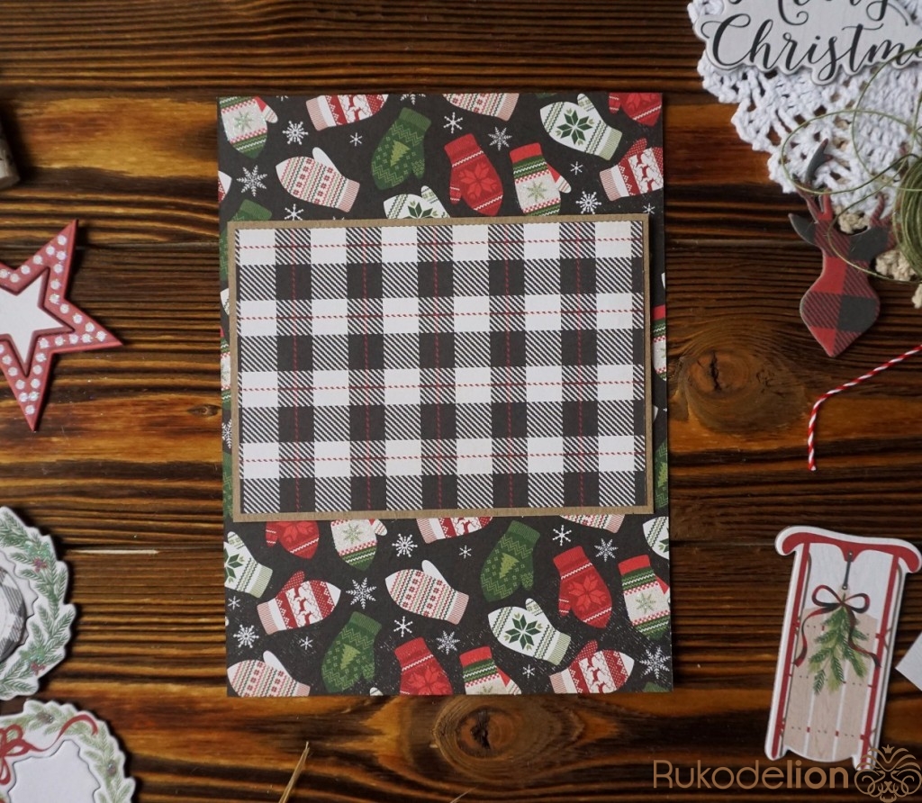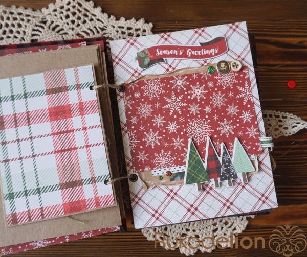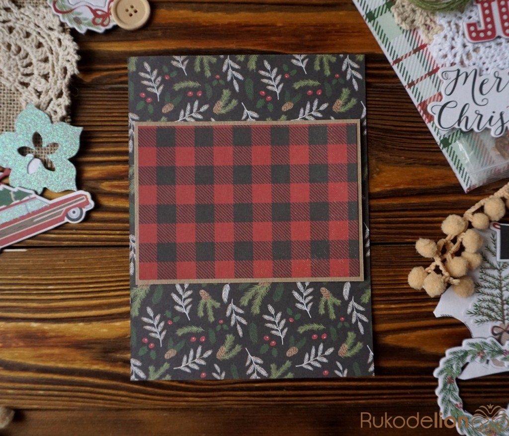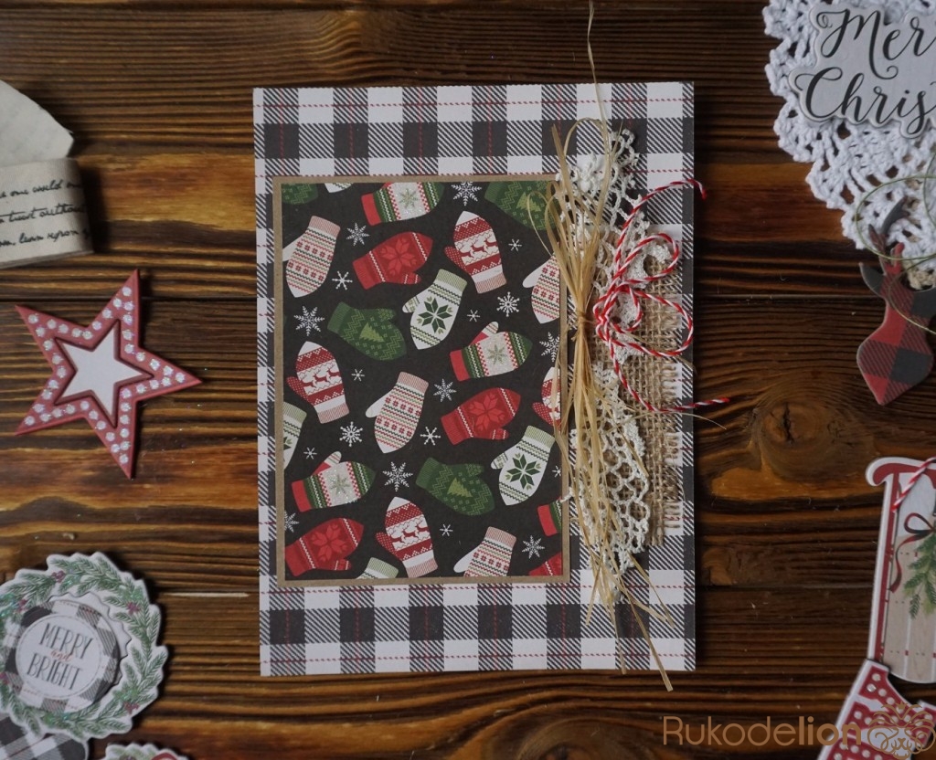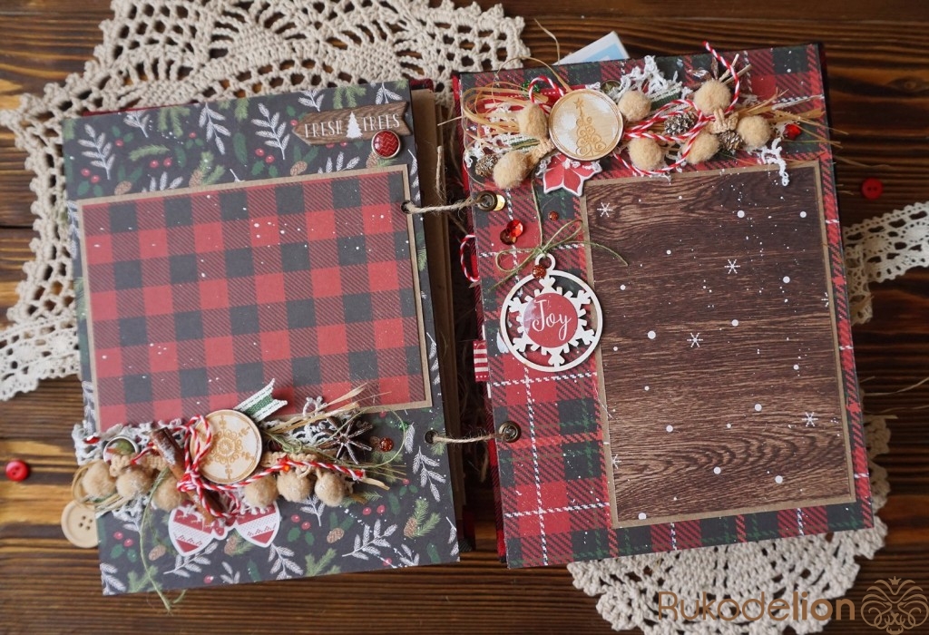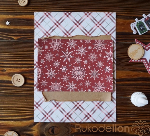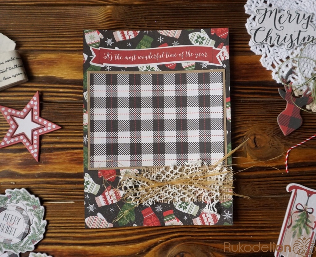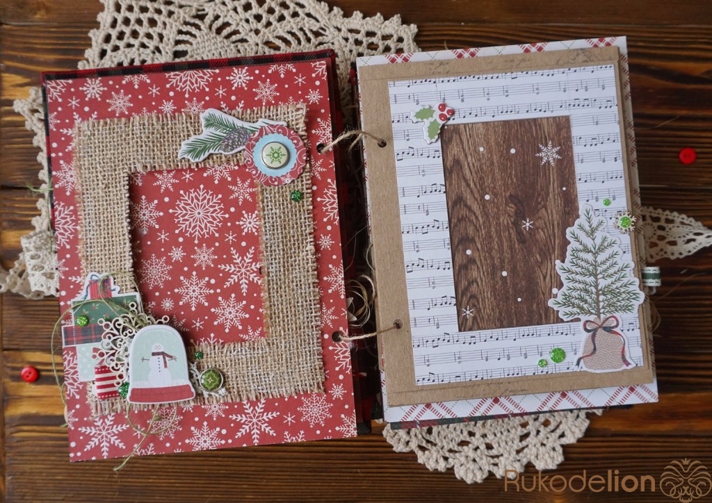 В работе использовала красивую коллекцию "Comfort and Joy" от MME (набор бумаги и чипборд), мешковину, рафию, маленькие шишечки, деревянные фишки и чипборд, брадсы и мелкий декор вроде пайеток.