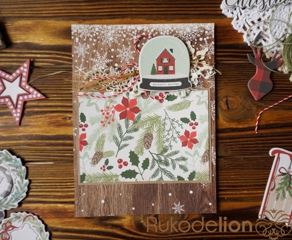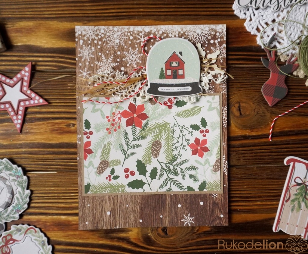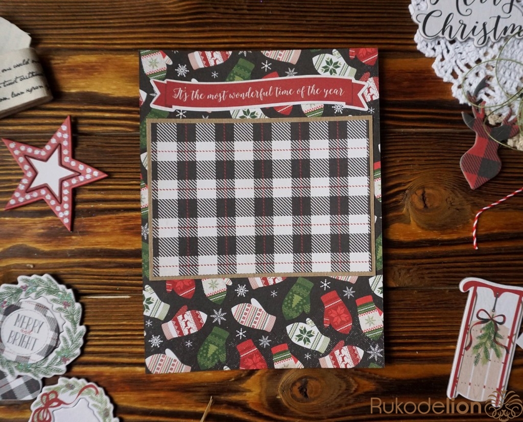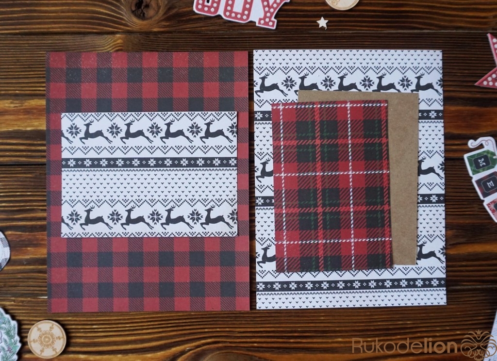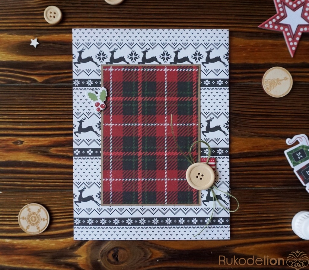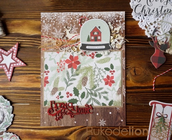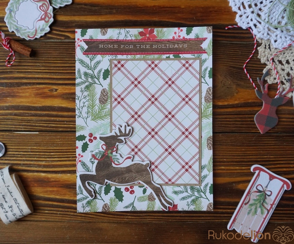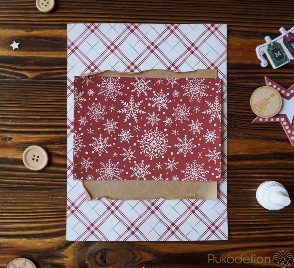 В работе использовала красивую коллекцию "Comfort and Joy" от MME (набор бумаги и чипборд), мешковину, рафию, маленькие шишечки, деревянные фишки и чипборд, брадсы и мелкий декор вроде пайеток.