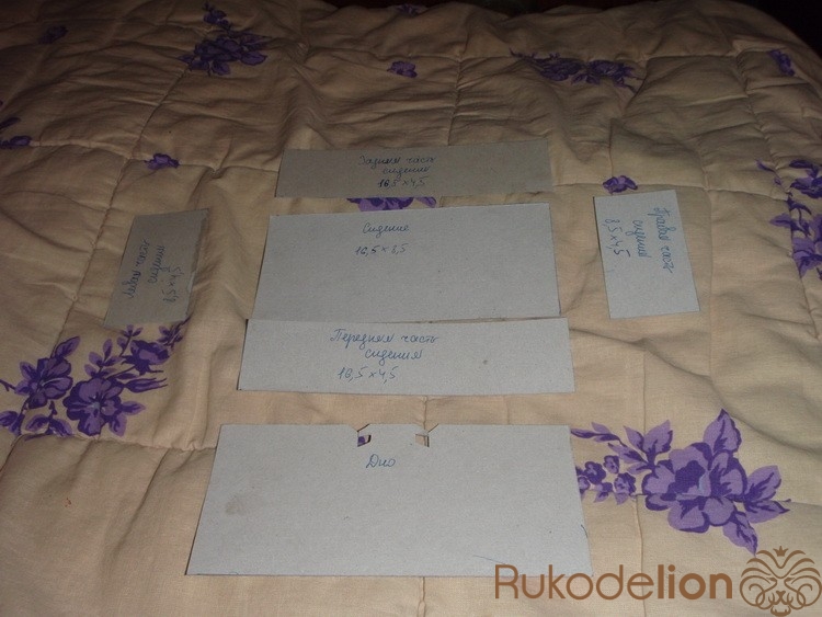 2) Все картонные части-каркасы - находятся внутри своих чехлов - это мы видим на второй, одинарной фотографии. Отверстия каждого чехла скреплены швом "петельным". Теперь - полностью готовы все части, составляющие диванное сидение.