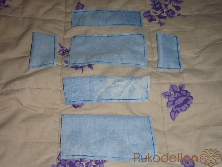 1) Торжественный момент! Чехлы - готовы к тому, чтобы их вырезать! Для этого, как упоминалось ранее, необходимо оставить место в размере полсантиметра или более - возле каждой из прошитых сторон. Возле непрошитой стороны-отверстия желательно тоже оставить: чтобы потом было удобнее сшивать. Здесь оно, к сожалению, оставлено совсем минимальное. Так тоже допустимо, но - желательно, всё же, оставлять больше места. И - вырезаем каждый из чехлов, для всех частей!
