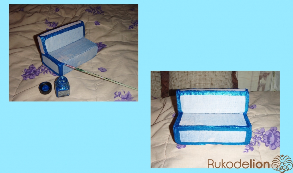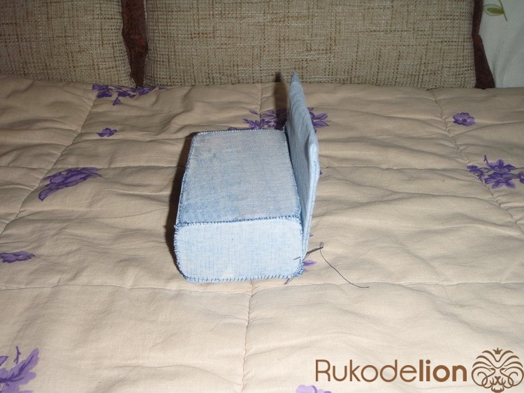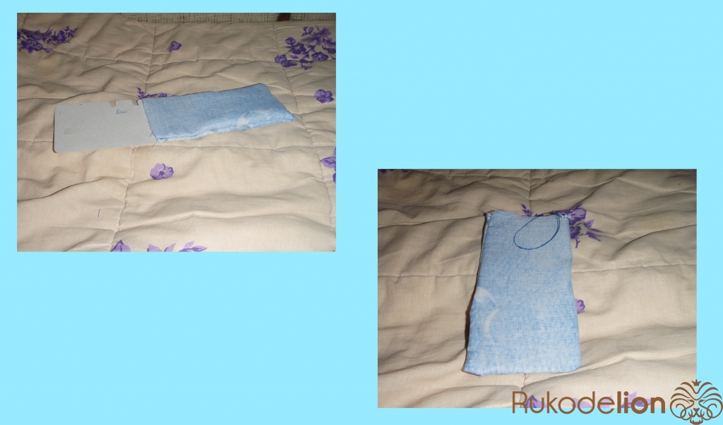 2.3) Можно полюбоваться на готовый чехол :-). Он уже вывернут на лицевую сторону, в нём находится вставленная картонная "несущая конструкция", и отверстие - благополучно зашито швом "петельным" - после вставки внутрь, картона. Схема - как мы видим - та же, что и для предыдущих чехлов.