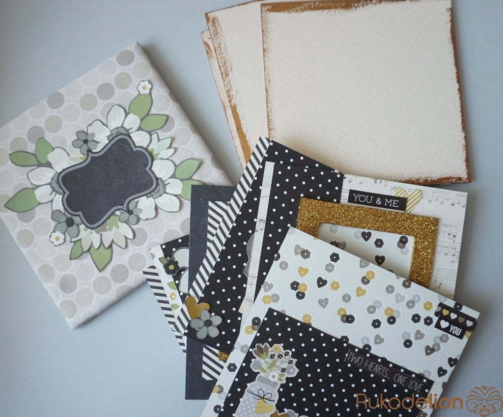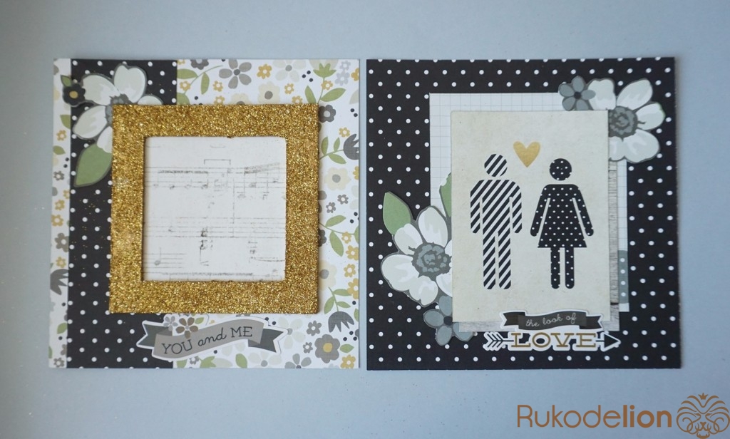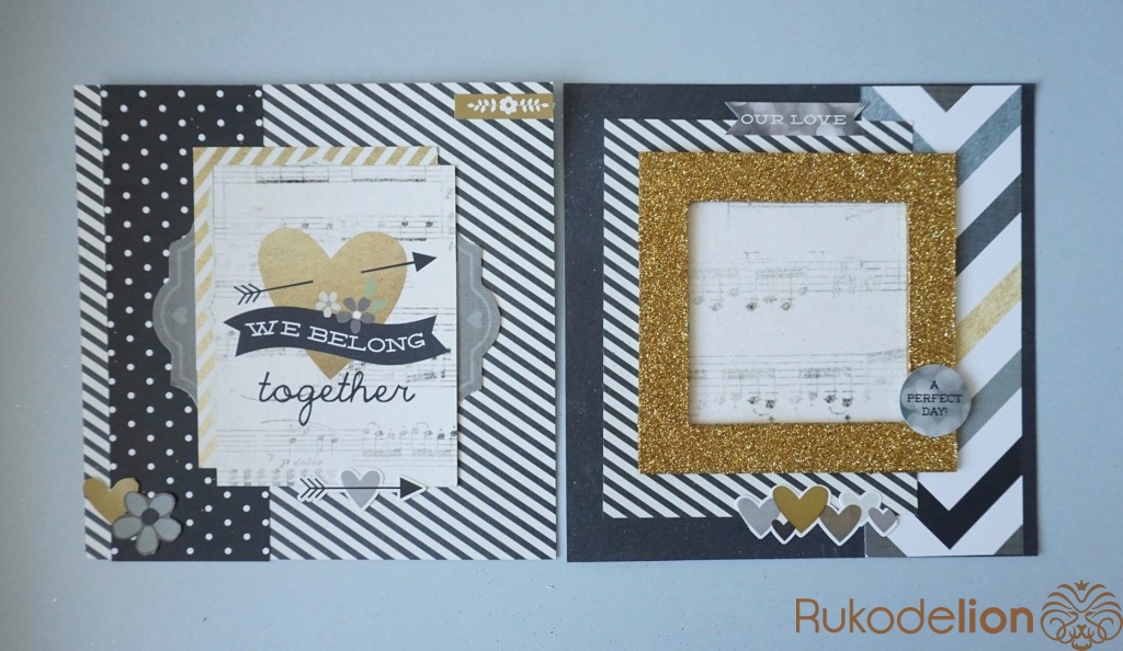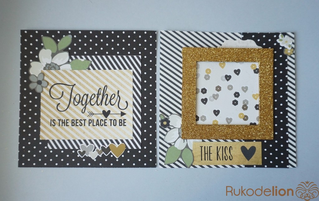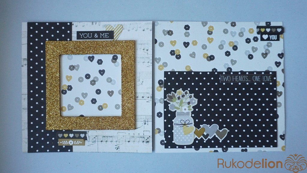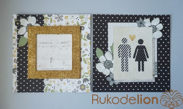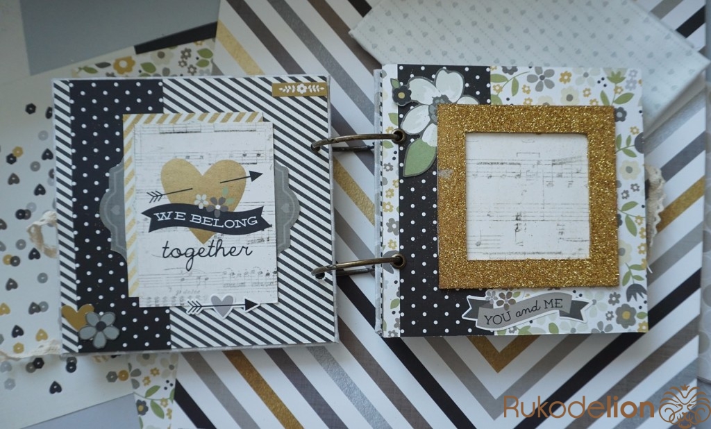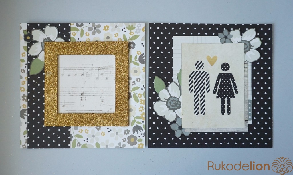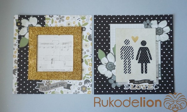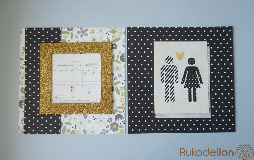 Фотографии будут размещены в красивые рамочки с глиттером. Вырезаем их из переплетного картона, у меня размером 10*10 см, толщиной 1,5 см (странички у альбома размером 15*15 см). Окрашиваем краской в тон блесткам, покрываем глосси и посыпаем блестками. Чтобы блестки не осыпались их можно закрепить лаком для волос.