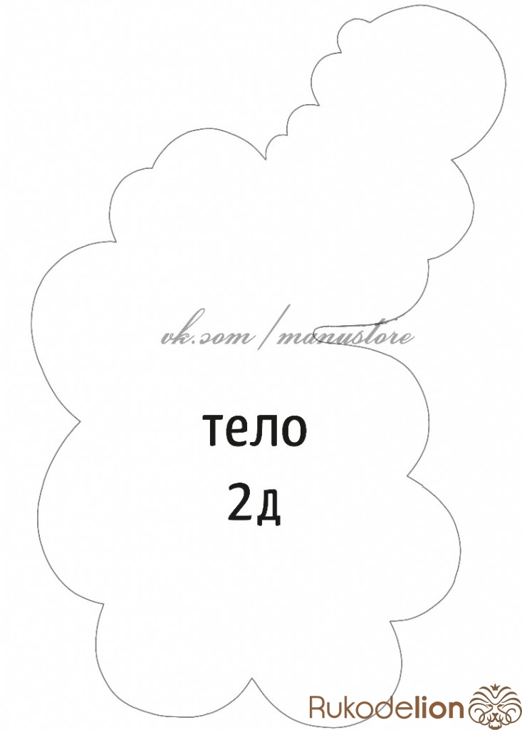 1. Выкройка (Данная выкройка размещена на листе формата а4, поэтому вы можете её просто распечатать, чтобы в итоге получить овечку такого же размера как у меня: ширина- 33 см, высота-24 см)