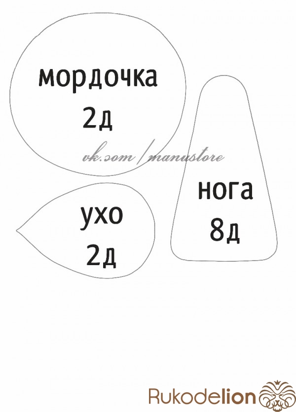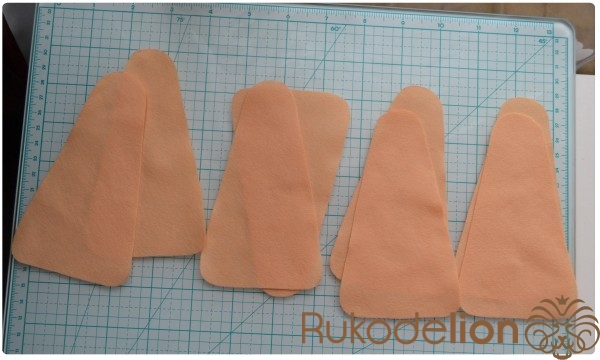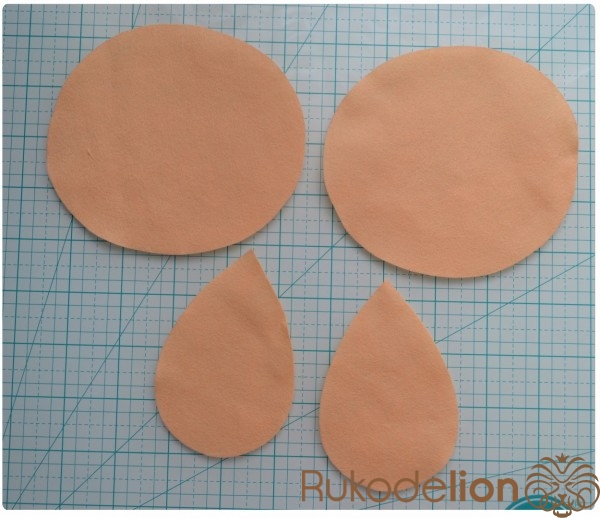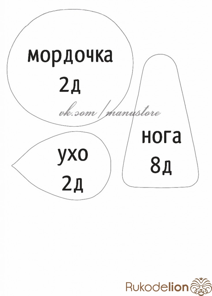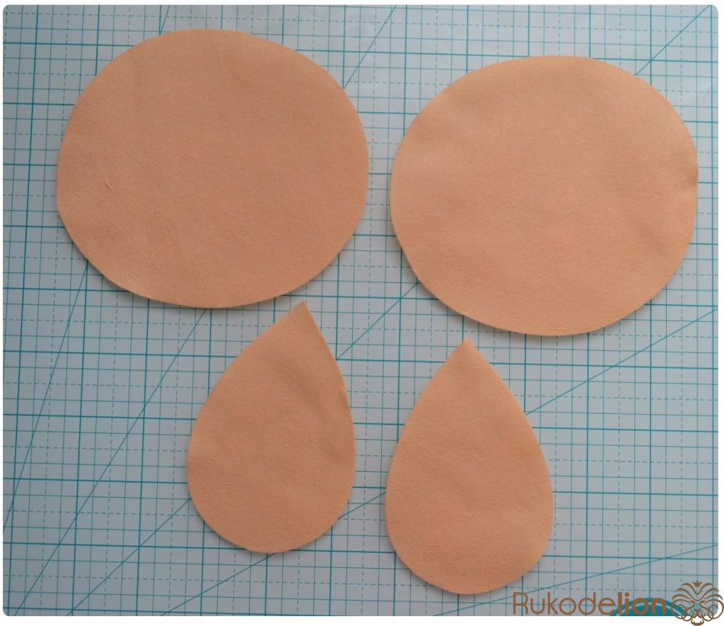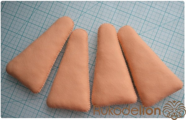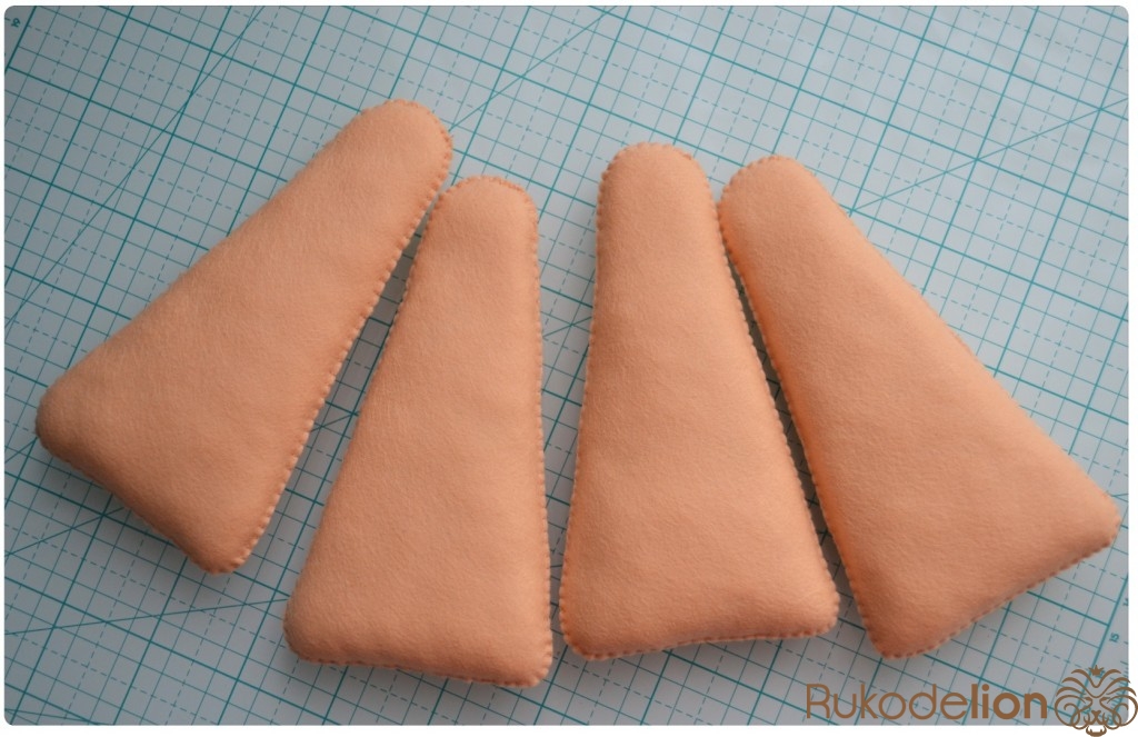Из бежевого фетра вырезаем 8 деталей лап, а также...