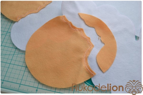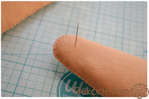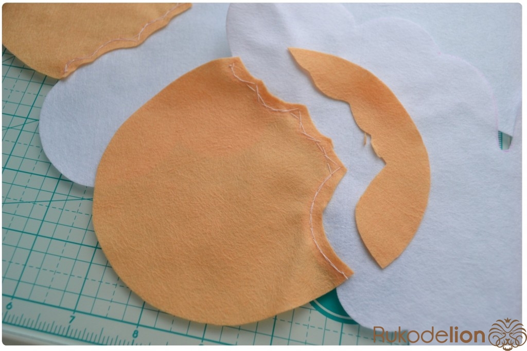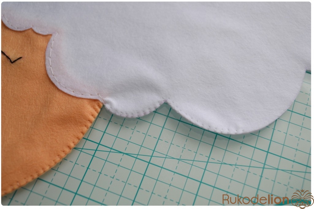 Так как я использовала белый полиэстеровый фетр, а он обладает небольшой прозрачностью, и я не хочу, чтобы был виден бежевый фетр под белым, я подрезаю край мордочки  близко к шву
