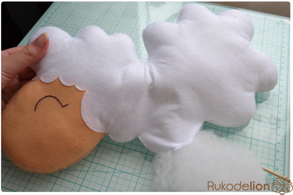 Теперь набиваем синтепоном всю оставшуюся часть овечки.