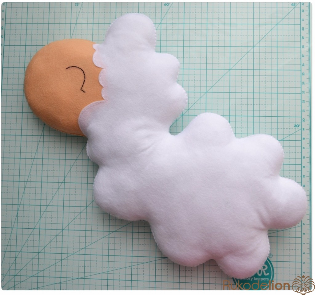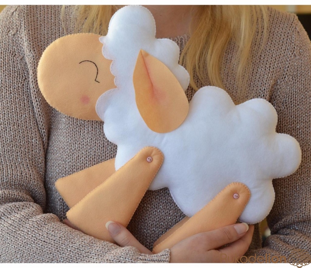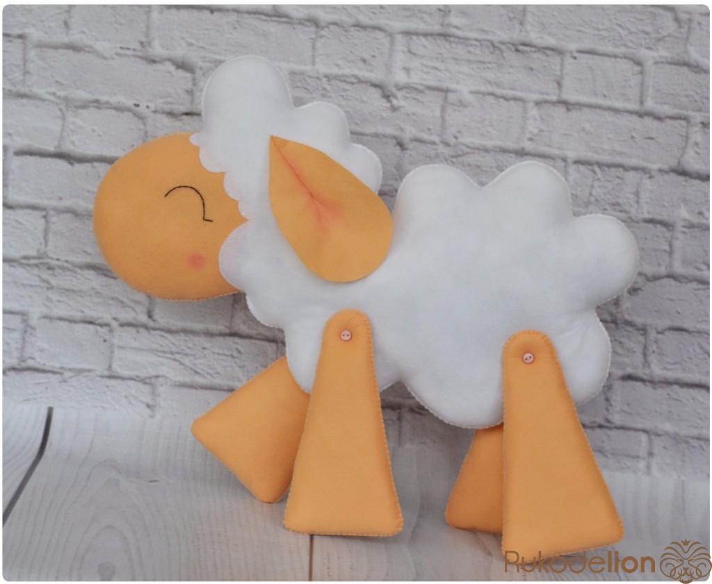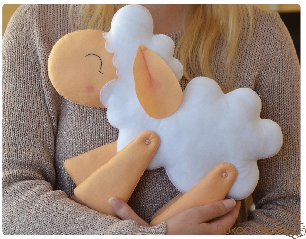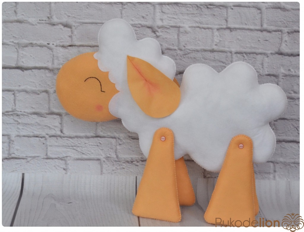 Вы можете изменить дизайн этой овечки, сделать ее не белой, а, например, персиковой или голубой. Украсьте ее цветочными узорами и бантиками - дайте волю своей фантазии или послушайте пожелания своего ребенка=)