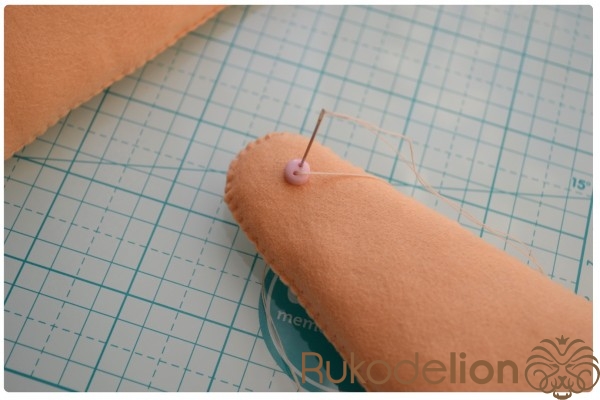 Когда все тело будет наполнено синтепоном, заканчиваем наш обметочный шов и обрезаем нить