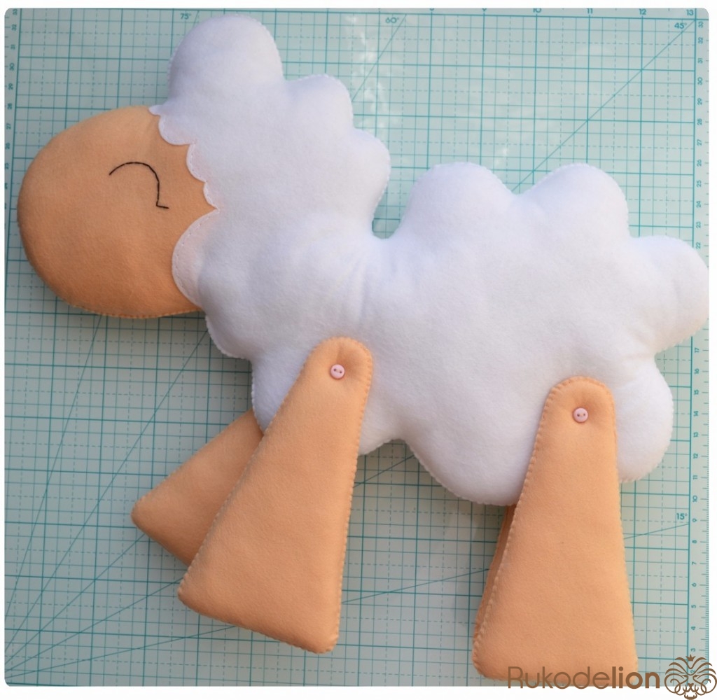 И вот наша овечка готова! Она получилась очень милая и мягенькая, да еще и с двигающимися лапками! Чудесная игрушка, которую ребенок может взять с собой в кроватку для сонных обнимашек=)