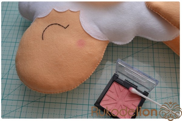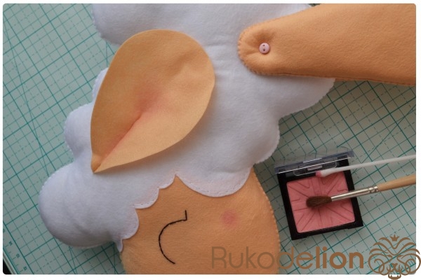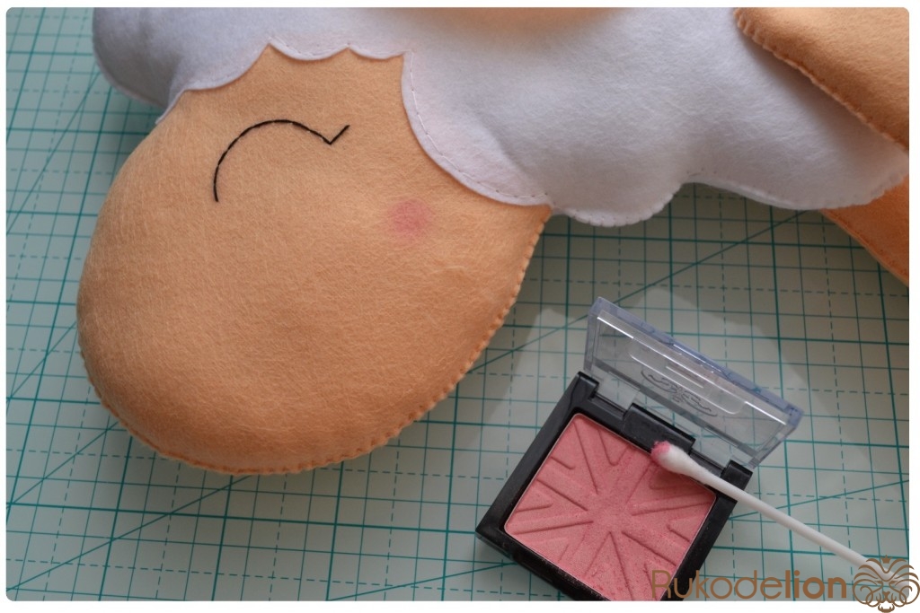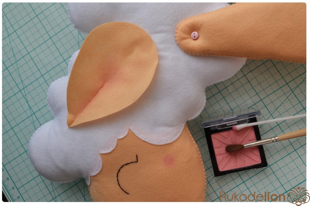 Так же нарисуем румянами розовые участки ушек. Ушки обычно я рисую при помощи кисти