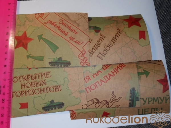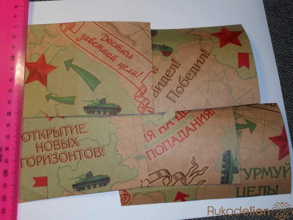 Из обёрточной бумаги вырезаем: для красных заготовок три прямоугольника размером 9x15 см,для белых - три по 8,5x14,5 см.