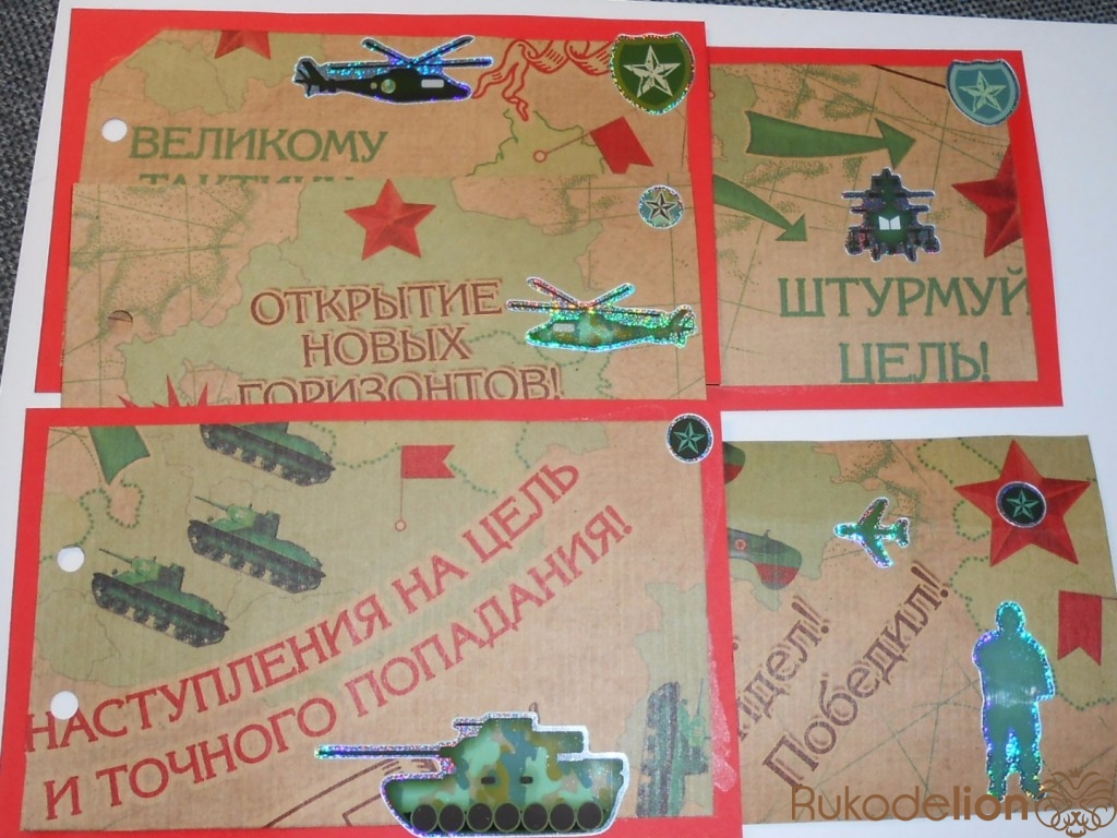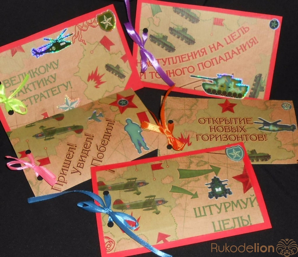Простые в исполнении открытки с пожеланиями для будущих воинов!