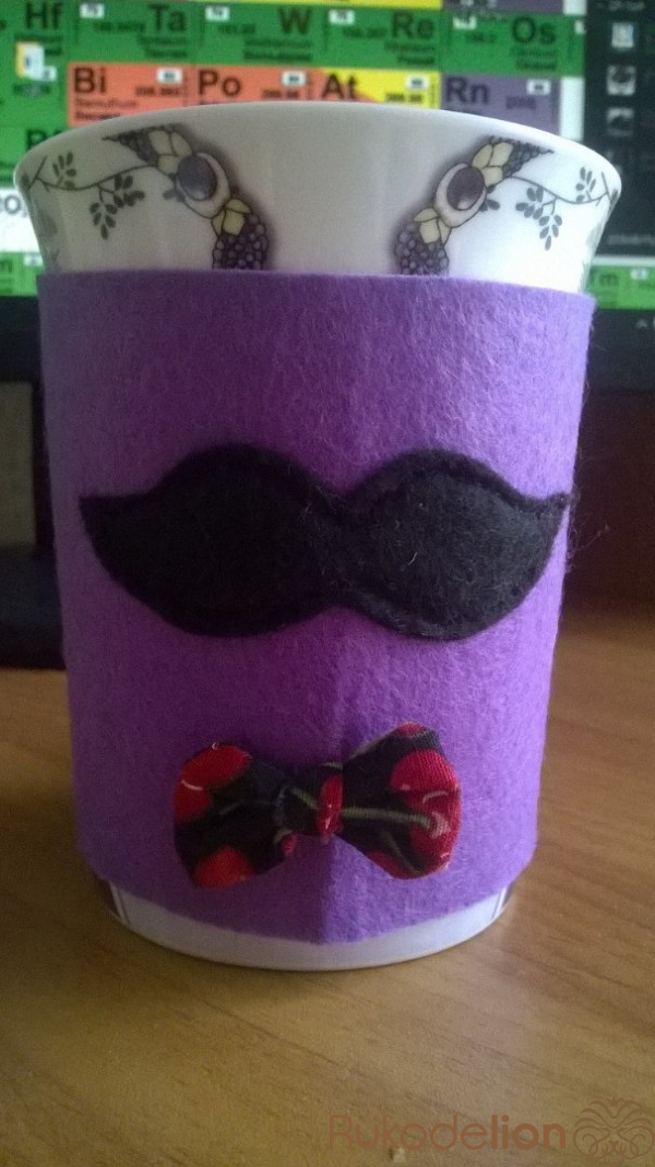 Галантный чехольчик для кружки ,фетр мягкий 1,1 мм, ткань
