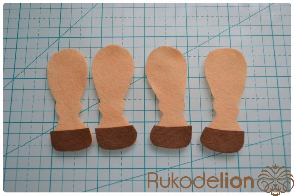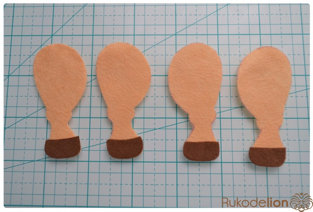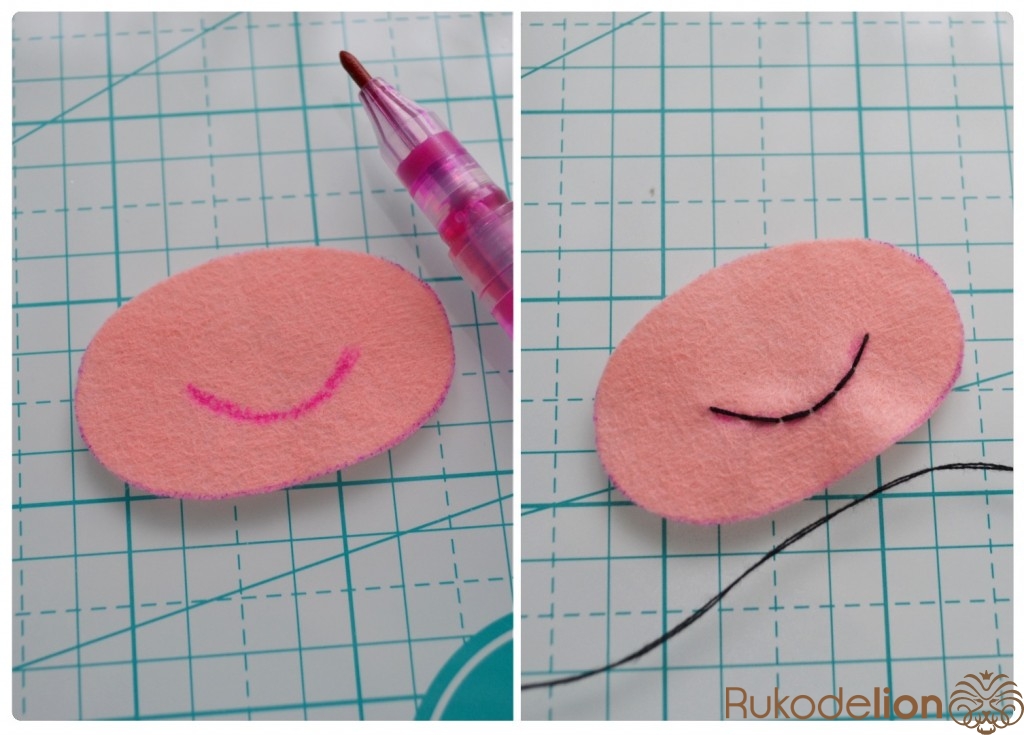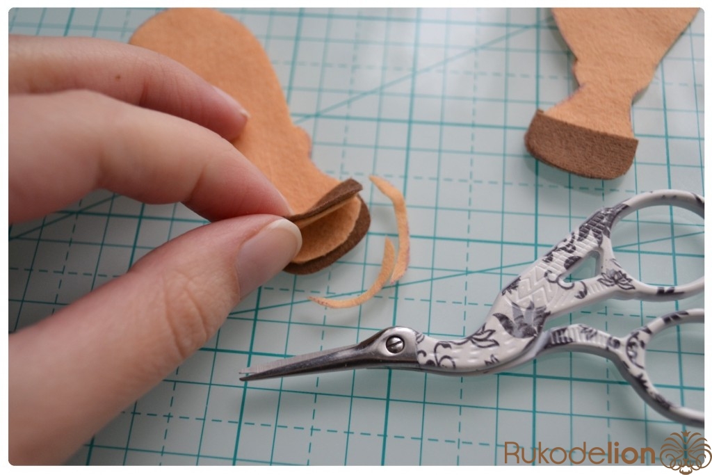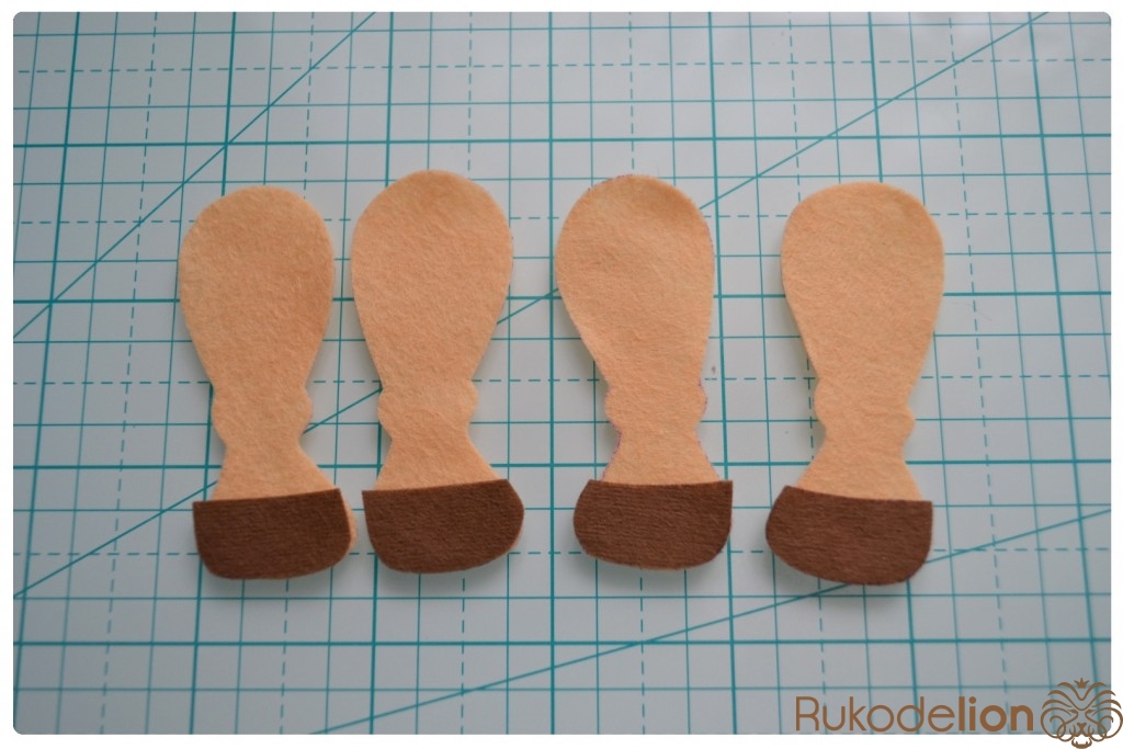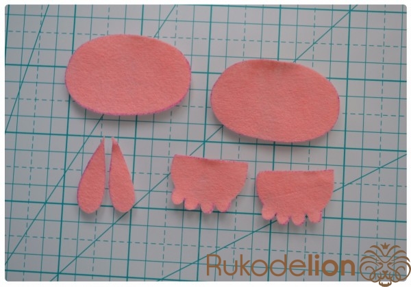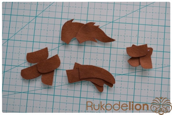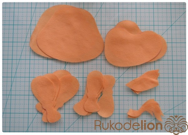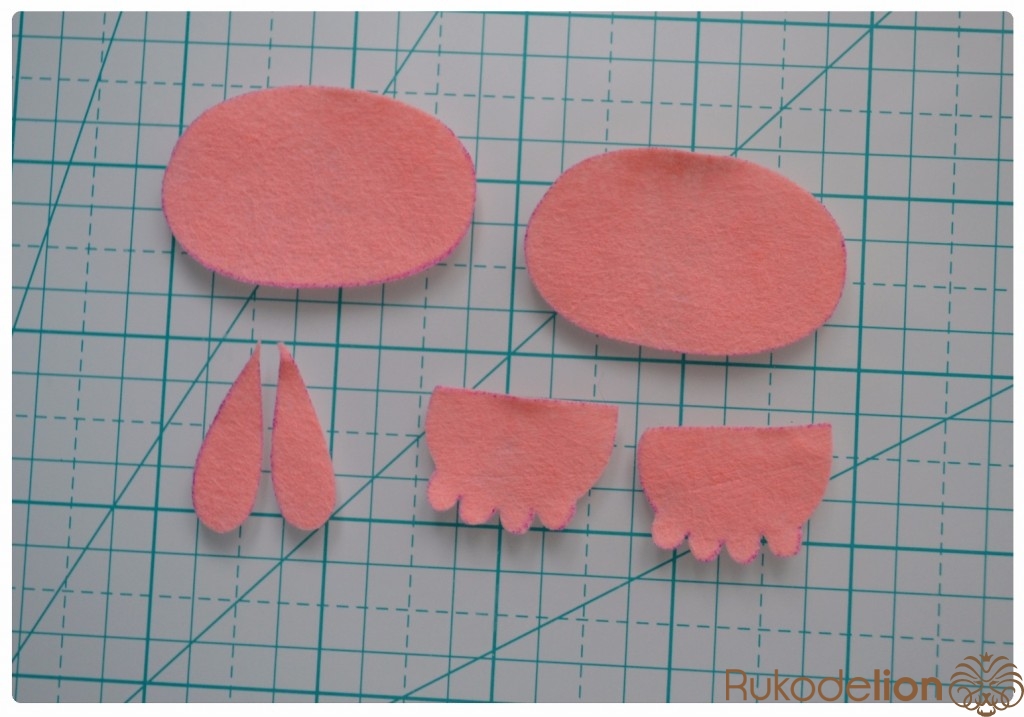 1. Фетр: бежевый, коричневый, синий, черный, розовый (я буду использовать мягкий полиэстеровый испанский фетр (0,5мм))