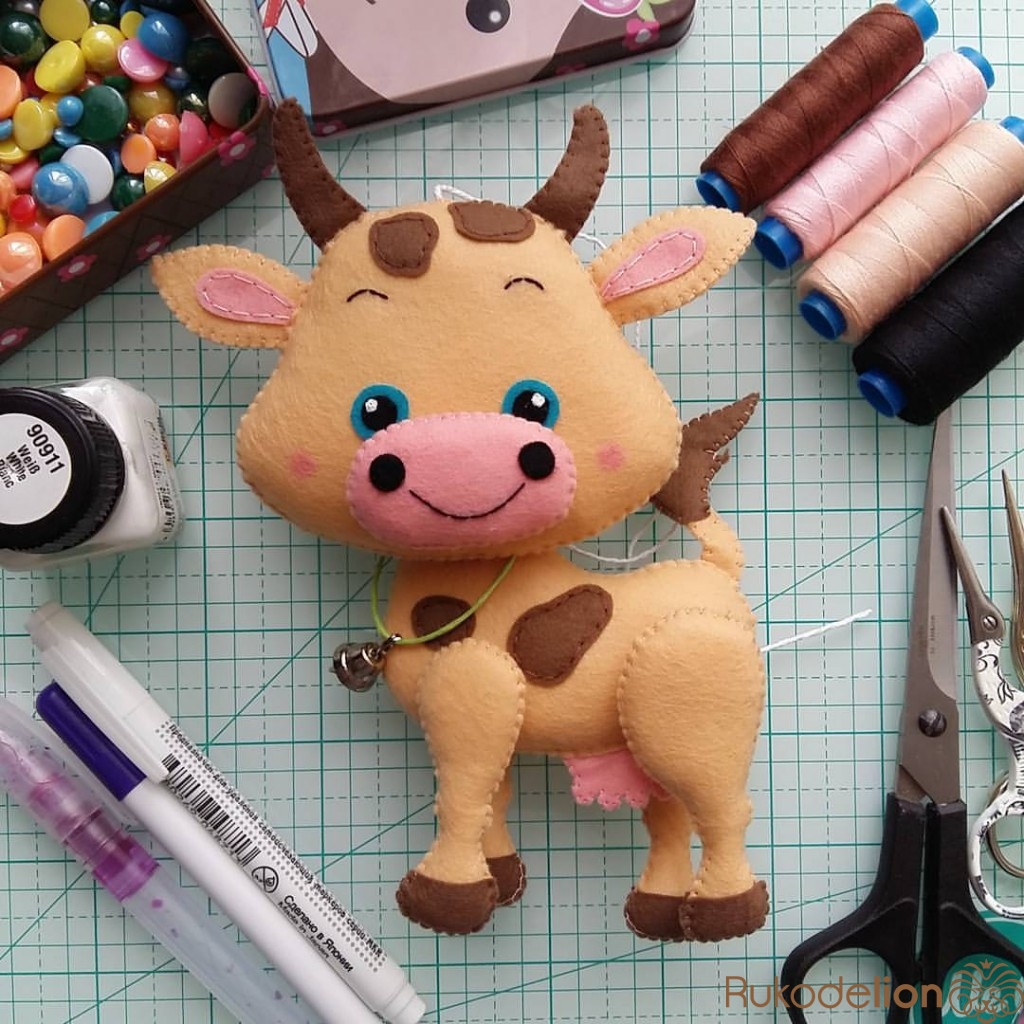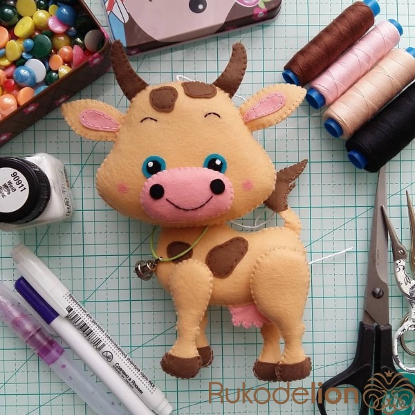 Сегодня вместе с вами мы сотворим вот такую милую и добрую коровку из фетра.