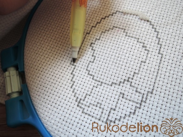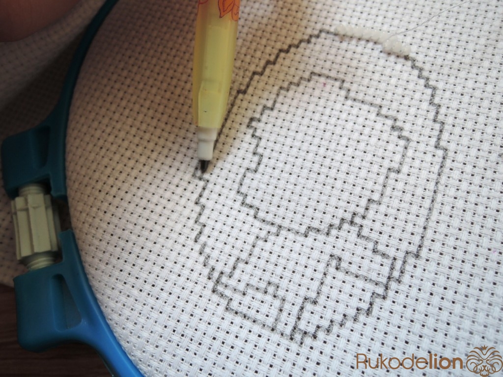 На канве отмечаем границы нашей броши и сам рисунок для удобства вышивания.