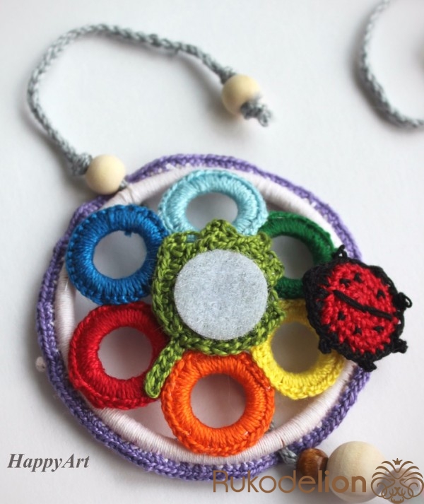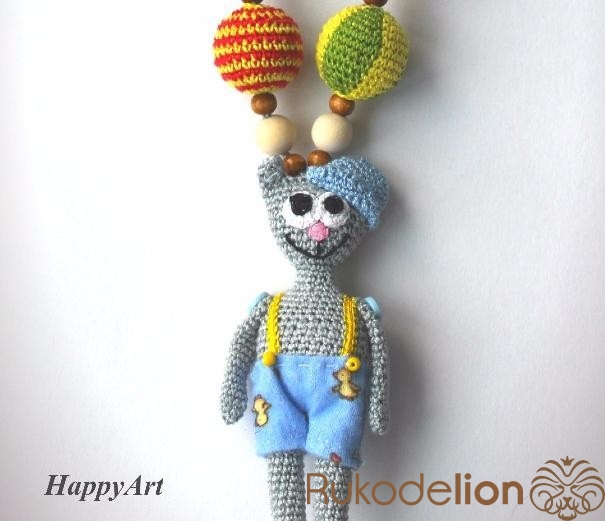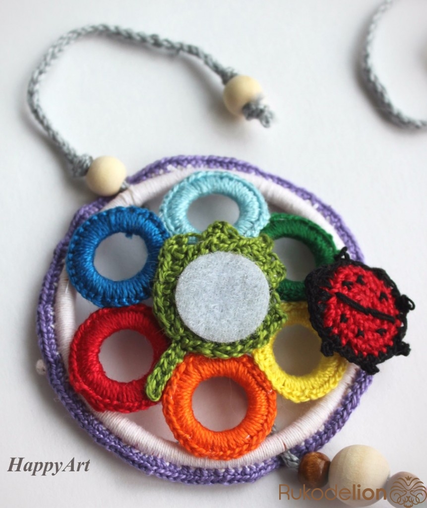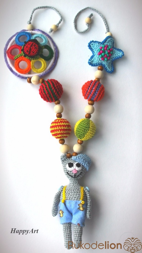 Слингобусы связаны из хлопковой нити.В изделии использованы деревянные бусины,в игрушке пищалка,в звезде шуршалка,божья коровка на липучке.