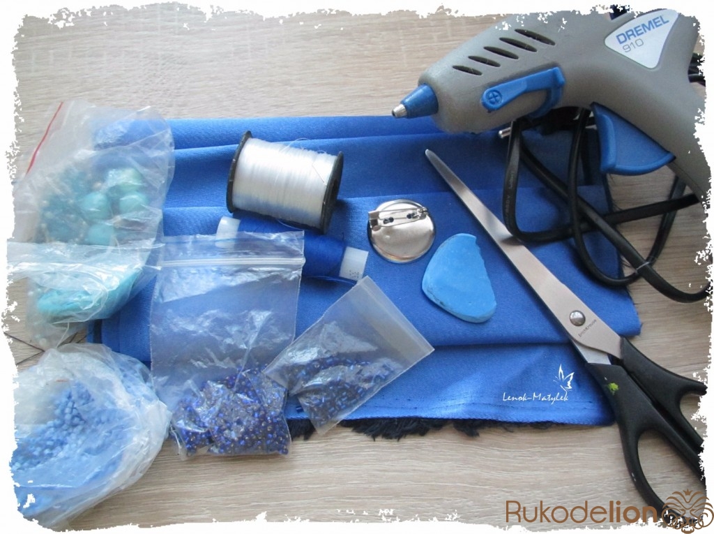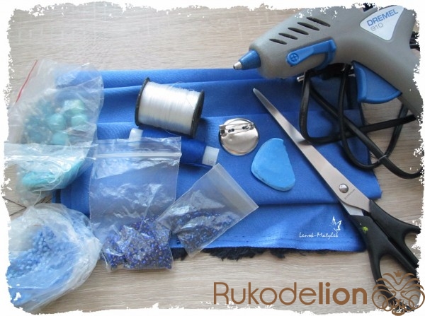 В качестве инструментов я использовала: клей-пистолет, вместо него можно использовать клей момент прозрачный (он не оставляет следов), ножницы, мел, нитки под цвет ткани или леску, иголку, булавки, свечки, спички.
