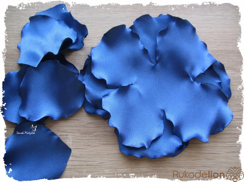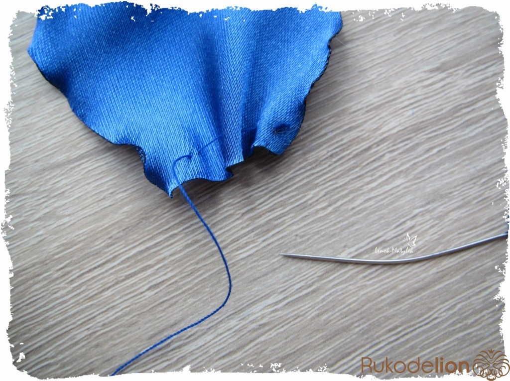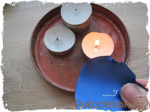 Вырезанные цветочки и лепесточки необходимо оплавить по краям. Поэтому для изготовления цветочков таким способом необходимо использовать ткани синтетические, они плавятся, а не горят под действием огня. Удобнее всего края оплавлять над пламенем свечи. При этом, для получения эффекта волны, следует лепесточки чуть по краям потягивать.
