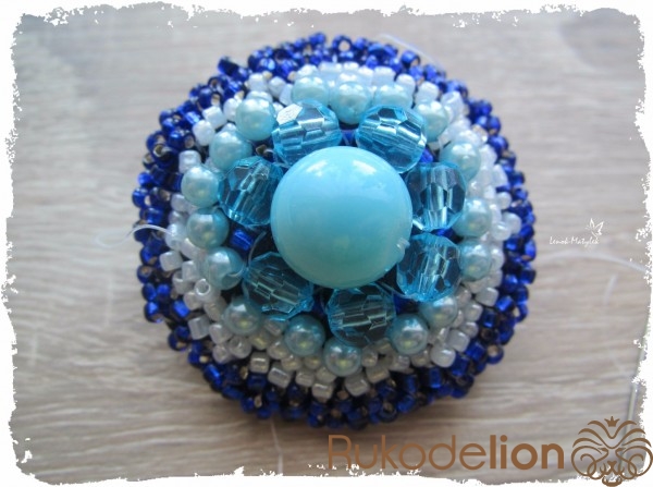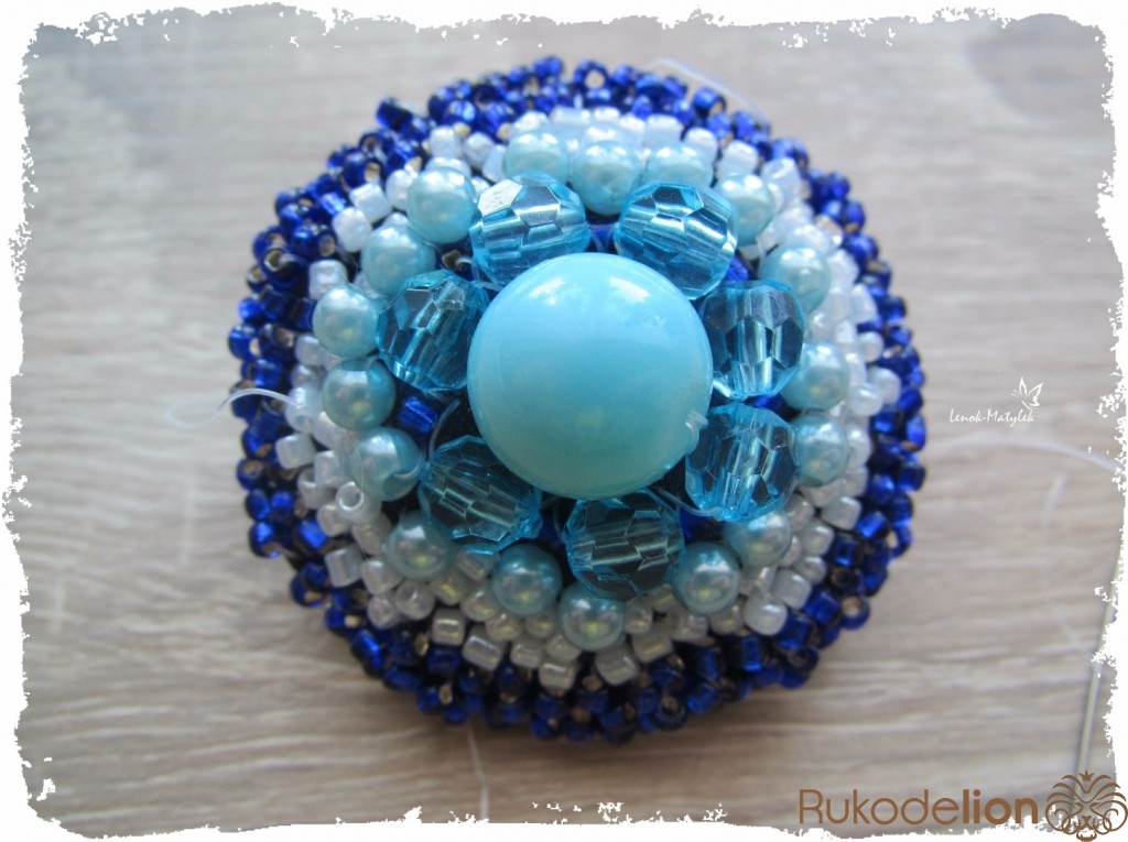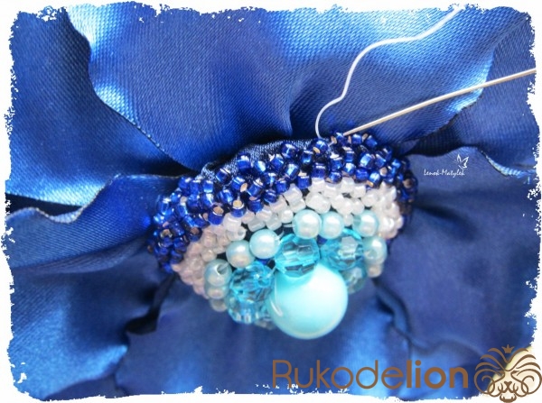 Далее сердцевина по вашему усмотрению украшается бисером, бусинами, стеклярусом и т.п. В качестве нити советую использовать леску, она крепче обычной нитки и будет практически незаметна.