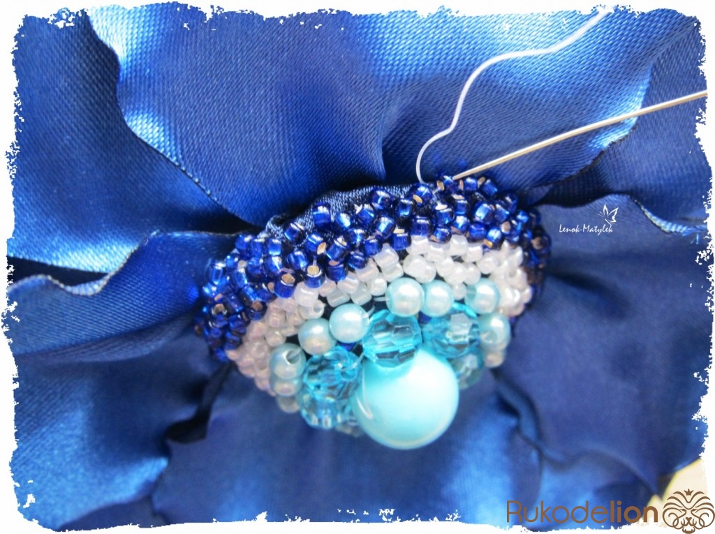 Пришиваем сердцевинку к цветочку. Опять же это можно сделать при помощи тоненькой лески.
