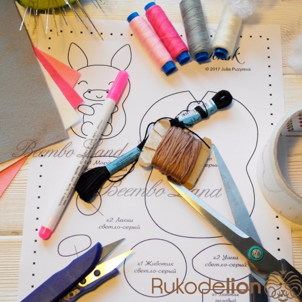 - Фетр мягкий (толщиной 1 мм): светло-розовый, ярко-розовый. молочный,серый