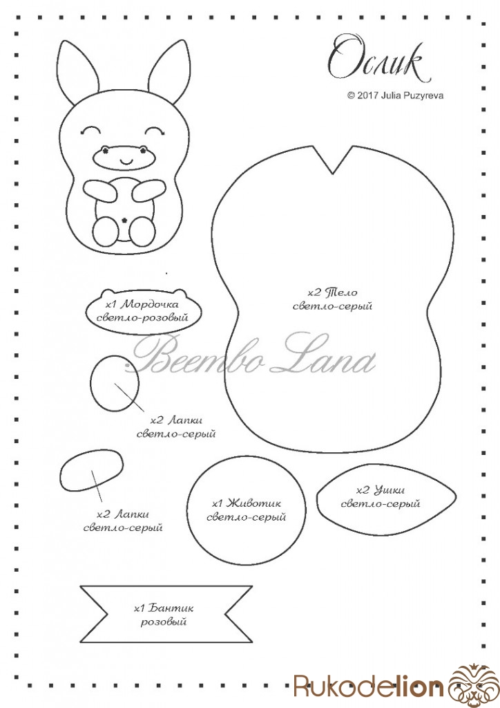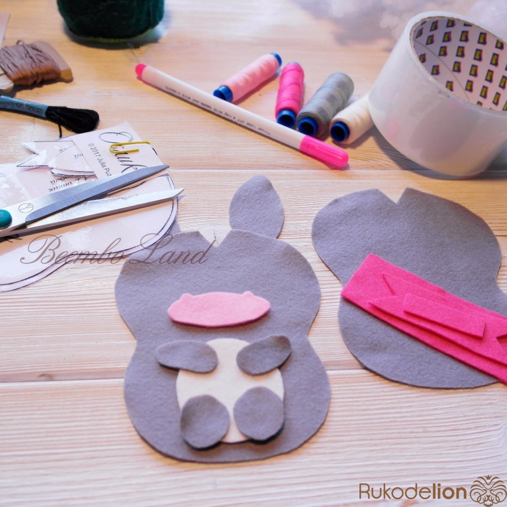 *Я распечатываю в 2-х экземплярах и приклеиваю вырезанные детали к фетру скотчем. Это позволяет рассчитать количество материала, сокращает время на раскрой и детали получаются более ровные.