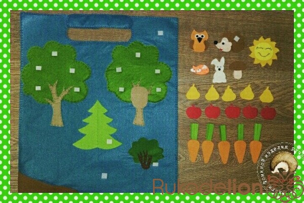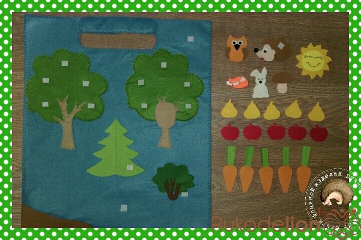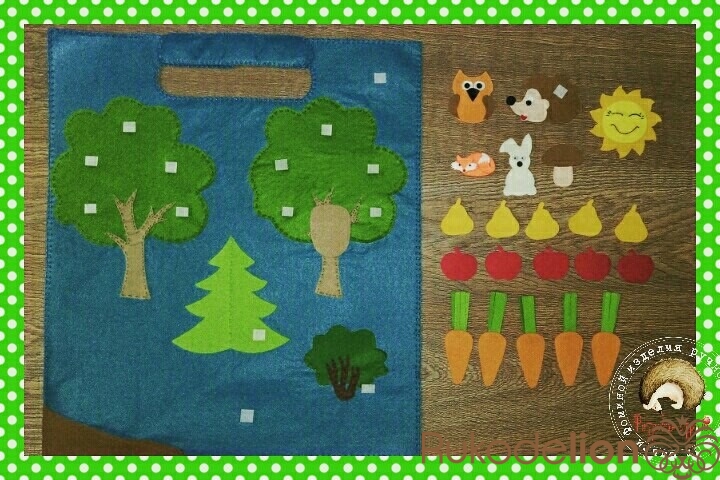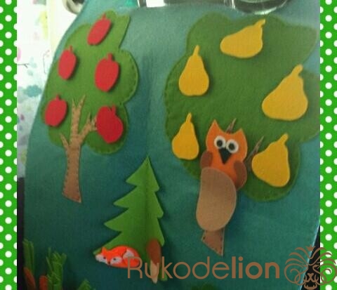 Развивающий коврик в машину. Выполнен из жесткого и мягкого фетра. На липучках.